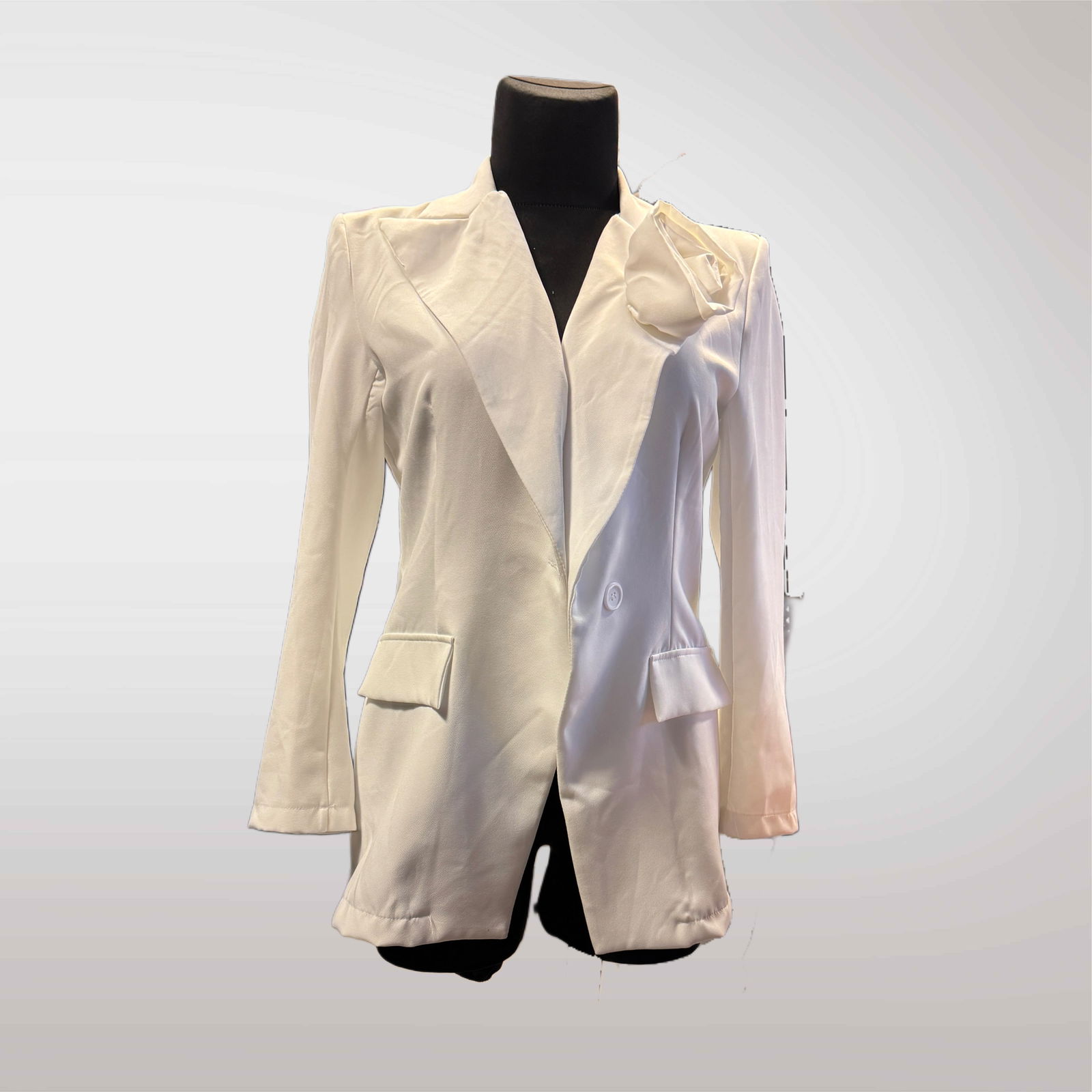 Elegancki żakiet o dopasowanym kroju, idealny do stylizacji na wyjątkowe okazje i na co dzień. Modny fason podkreśla sylwetkę, a ozdobna aplikacja na ramieniu dodaje mu unikalnego charakteru. Guziki na przodzie nadają klasycznego wyglądu.