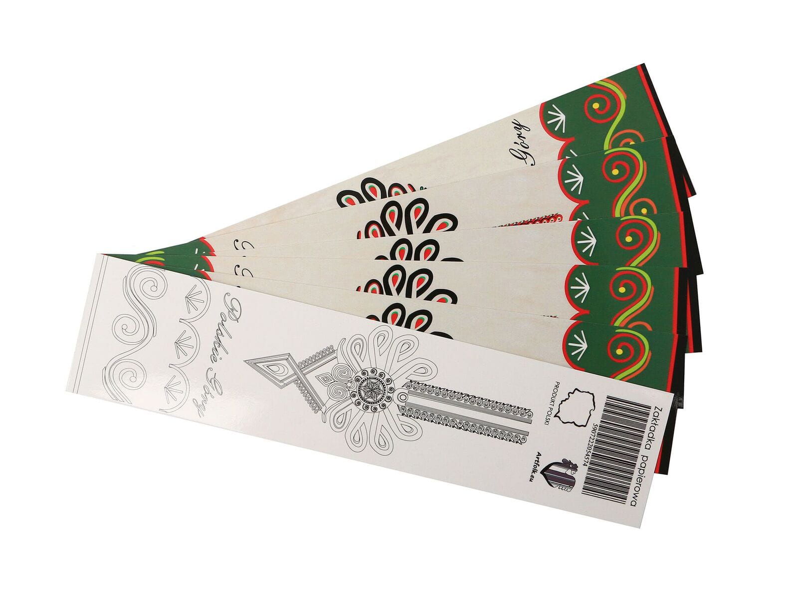 Przedstawia tradycyjny motyw podhalański - parzenicę, którą odnajdziemy w męskich strojach ludowych Podhala. Zakładka wykonana z kartonu pokrytego błyszczącą folią. Idealny dodatek do kompletu z książką.