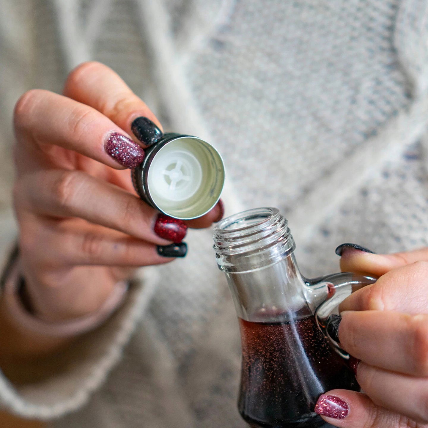 Zakrętka z dozownikiem o wymiarach 31,5 x 24 mm.