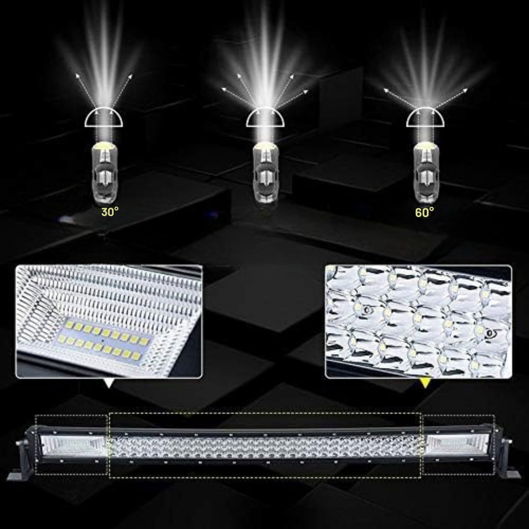 AUXTINGS 52 cale 675W potrójny rząd zakrzywiona listwa robocza LED Spot/Flood Combo DC 12V–24V 6000K do pojazdów terenowych 4x4, ATV, UTV (bez wiązki przewodów)