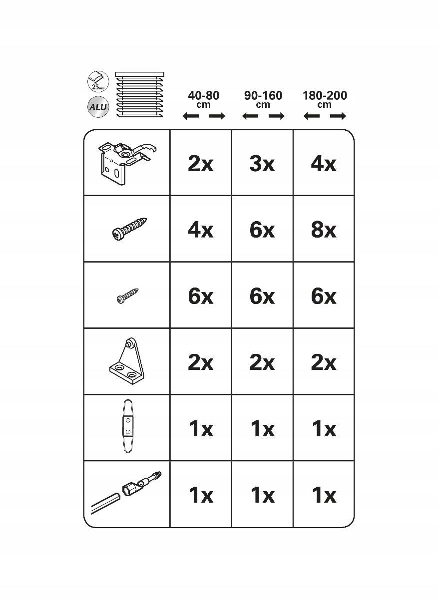 - Sznurki i drabinki w kolorze dopasowanym do koloru lameli