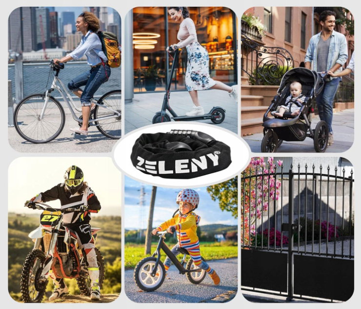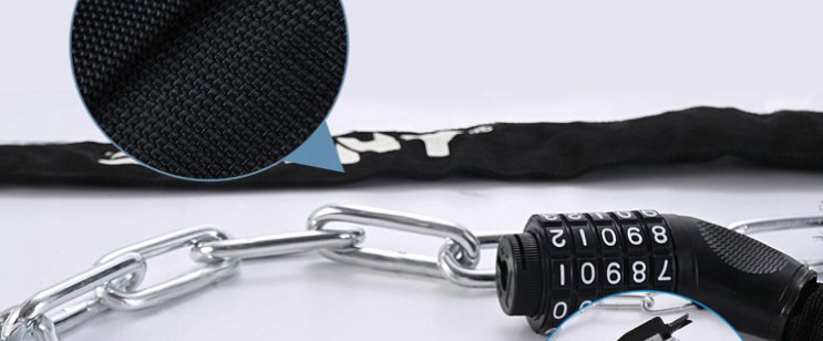 - ✴️Łańcuszek z blokadą jest bardzo elastyczny w użyciu. Może być używany do blokowania pojazdów, takich jak pnie drzew, ogrodzenia, rury i inne przedmioty. Ten zamek nadaje się również do zamka rowerowego, zamka do hulajnogi elektrycznej i wózków dziecięcych, bramek ogrodzeniowych, kosiarek i skrzynek narzędziowych. Wystarczy przymocować łańcuch do tych przedmiotów, aby zapewnić doskonałą ochronę przed kradzieżą.
