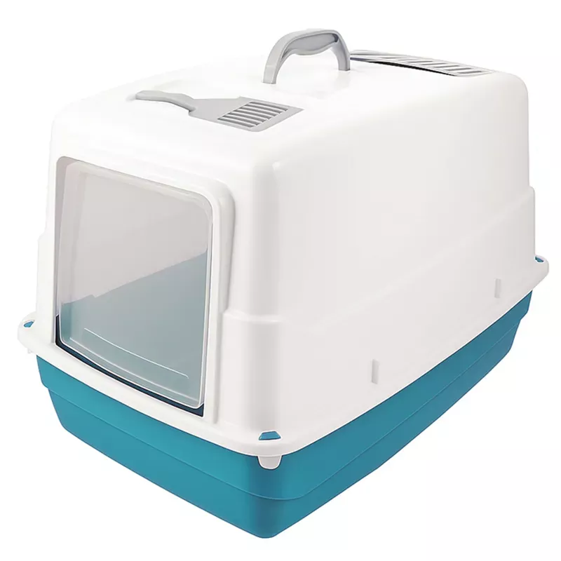 Kuweta z górnym uchwytem ułatwiającym zdejmowanie pokrywy co ułatwia czyszczenie kuwety. Gładka, zakrzywiona konstrukcja, zwiększa przestrzeń, duży otwór wejściowy, ułatwia kotu wchodzenie i wychodzenie z kociego wc. Parametry techniczne: