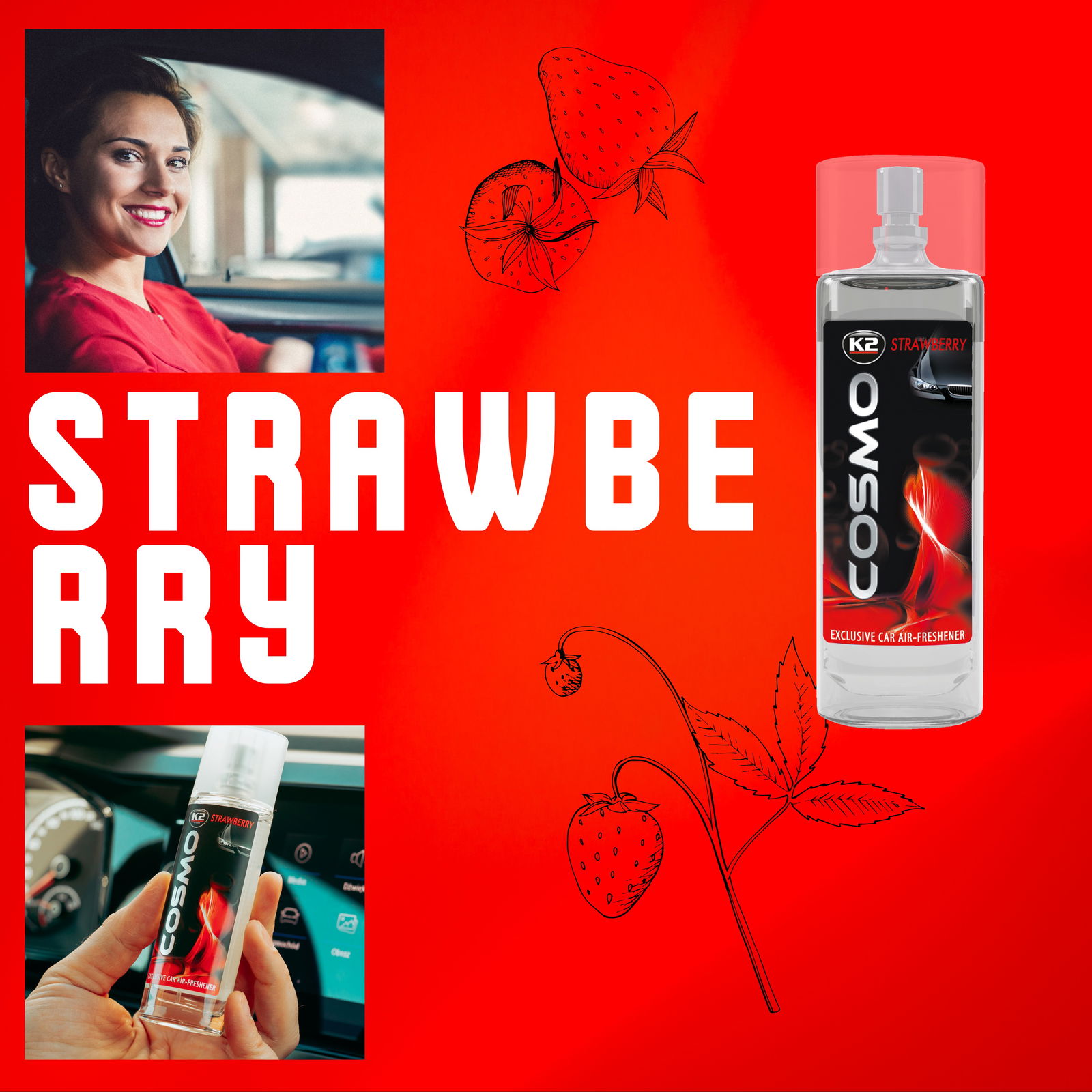 K2 COSMO STRAWBERRY to zapach dojrzałej i soczystej truskawki, który jest zapowiedzią nadchodzącego lata sprawi, że poczujesz przypływ pozytywnej energii i uspokojenia.
