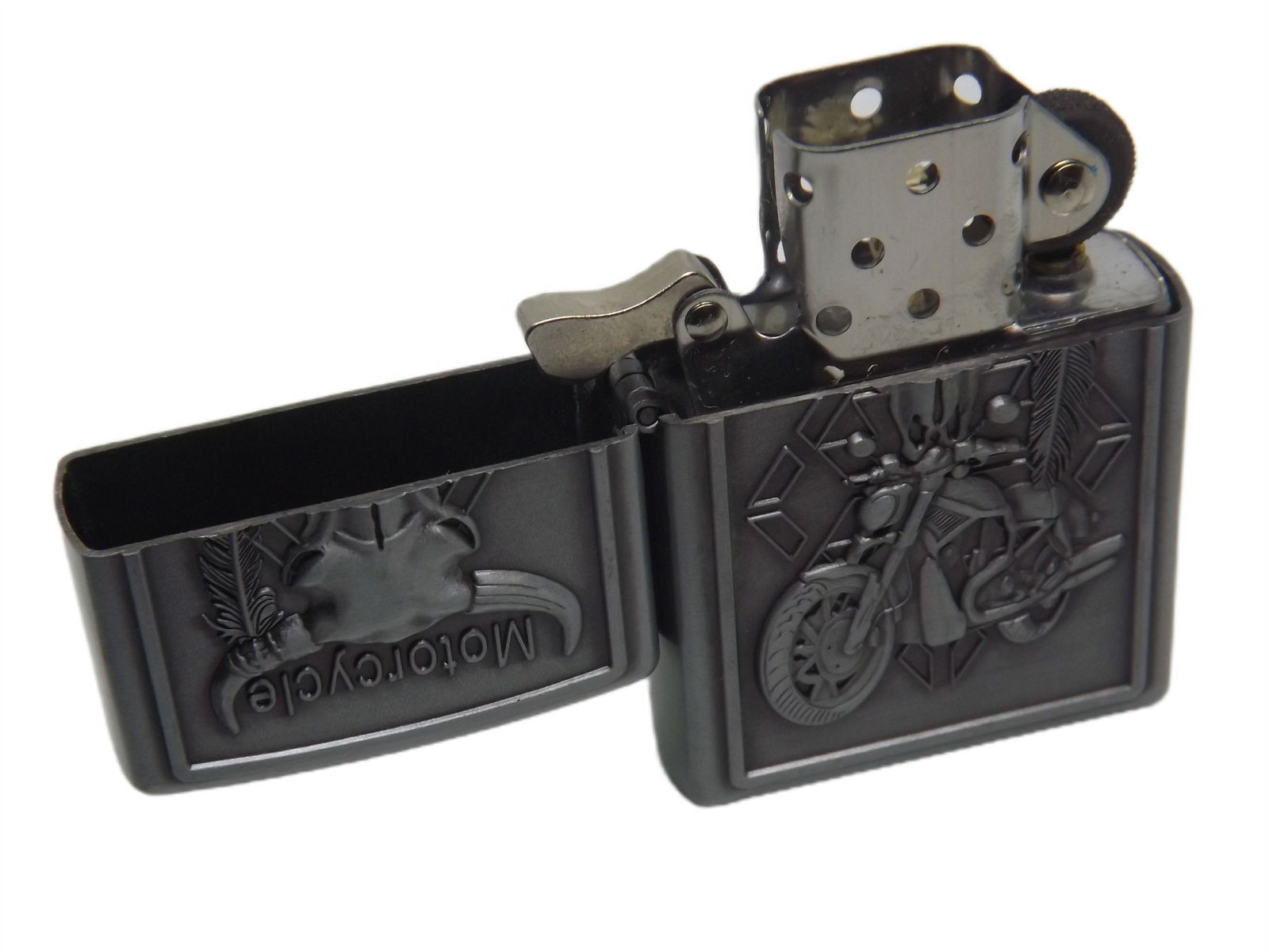 ZAPALNICZKA BENZYNOWA METALOWA WZÓR MOTOCYKLE SREBRNA