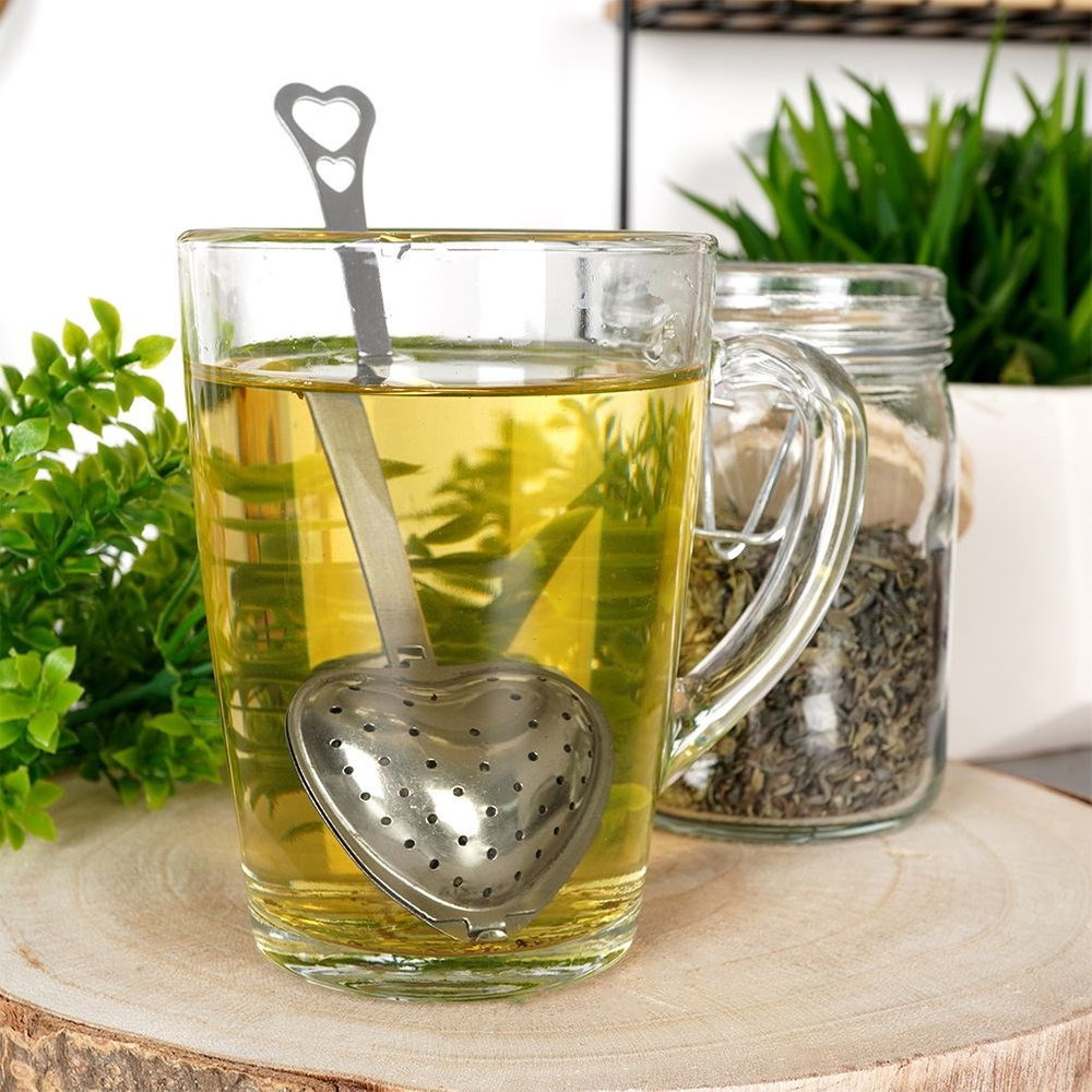 UNIWERSALNE - Sitko do zaparzania herbaty lub ziół w kształcie serduszka. Sitkowa struktura sprawi, że do napoju nie przedostaną się żadne fusy. Sitko ma wymiary 14 x 4,5 cm.