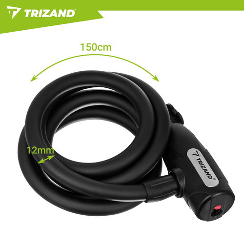 Zapięcie rowerowe 150 cm Trizand linka stalowa 12 mm z kluczem uchwyt