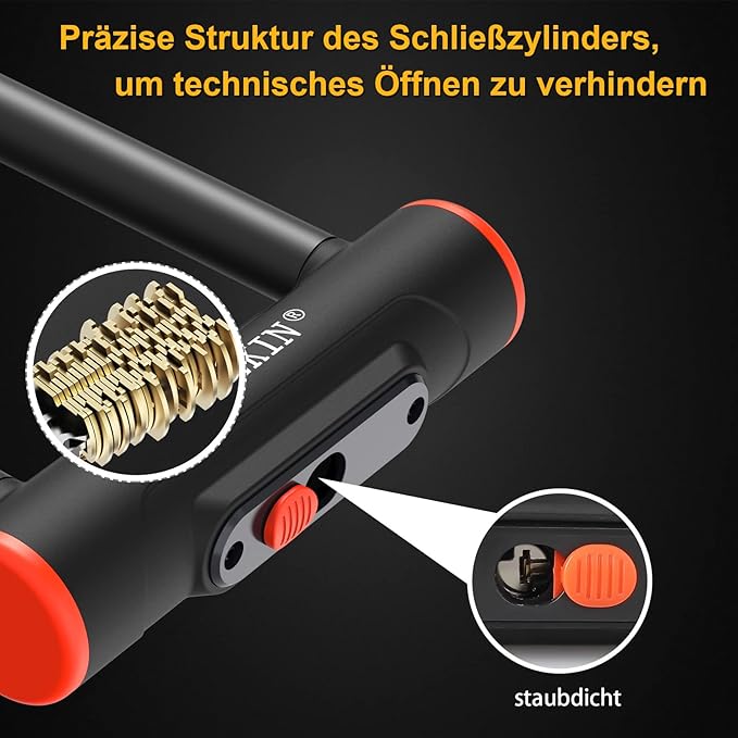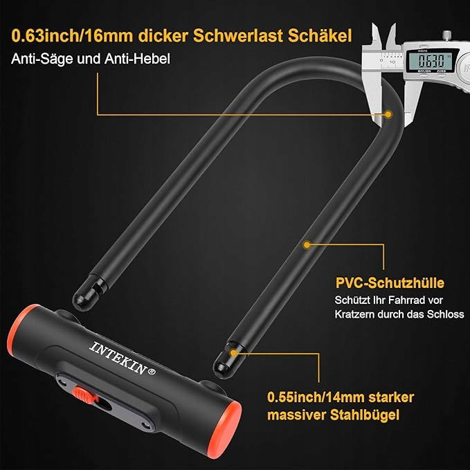 INTEKIN Zapięcie rowerowe U-Lock z uchwytem, 16 mm i z 3 kluczami