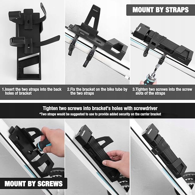 Możesz zainstalować składaną blokadę na rowerze zgodnie ze swoimi potrzebami, a średnicę paska instalacyjnego można dopasować do różnych rozmiarów rury podsiodłowej.