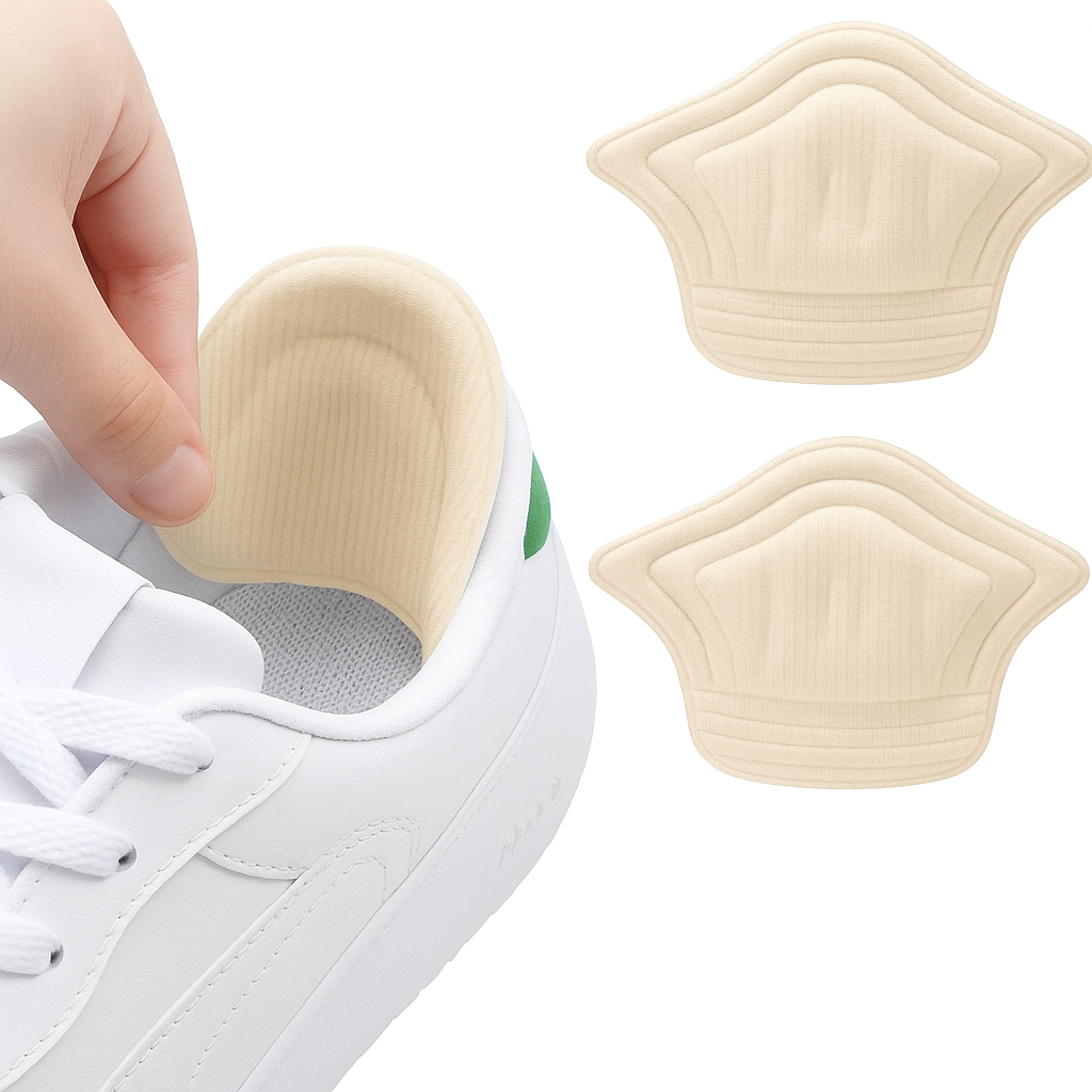 Zapiętki są samoprzylepne i uniwersalne – można je dopasować do każdego rodzaju obuwia, przycinając nożyczkami do odpowiedniego rozmiaru wzdłuż zaznaczonej linii. Dzięki samoprzylepnej warstwie, zapiętki łatwo przykleja się do wnętrza buta, a odpowiednie oczyszczenie powierzchni przed aplikacją zapewnia trwałe przyleganie.