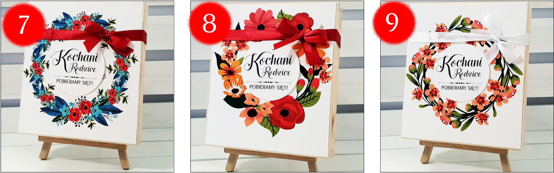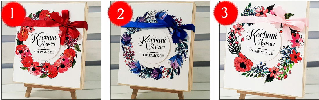 - Kółeczko na wierzchu pudełka 3D (Kochani Rodzice, Pobieramy Się, Zaproszenie, Kochani Dziadkowie, Drogiemu Świadkowi, Drogiej Świadkowej)