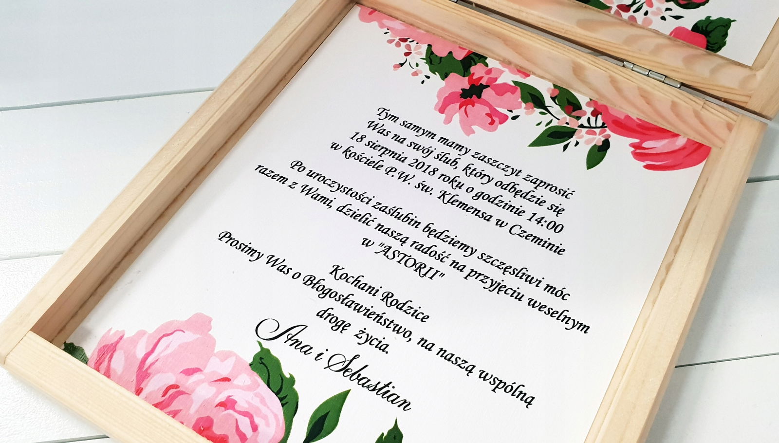 - Możliwość wyboru dowolnego wzoru z naszej aukcji pasującego do Państwa zaproszeń