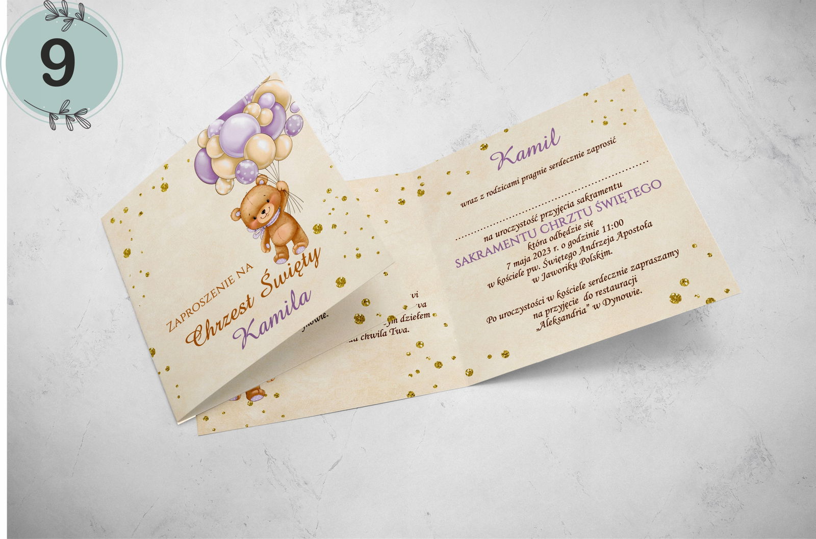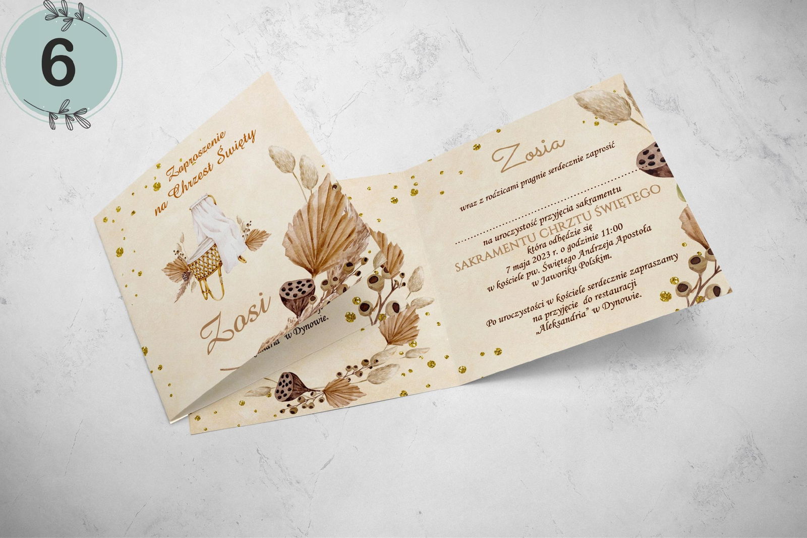 Zaproszenia na chrzest urodziny IMIĘ KOPERTA BOHO PR 401