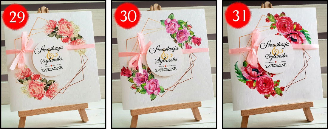 - Zaproszenia przed złożeniem: ok. 15 cm x 29 cm