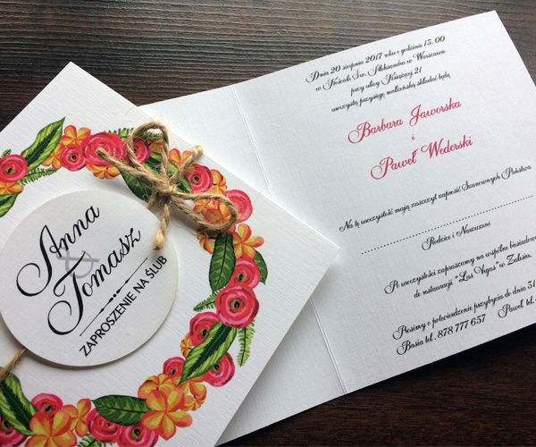Przedmiotem tej oferty są przepiękne zaproszenia i zawiadomienia ślubne z kolekcji Wianki 2018,