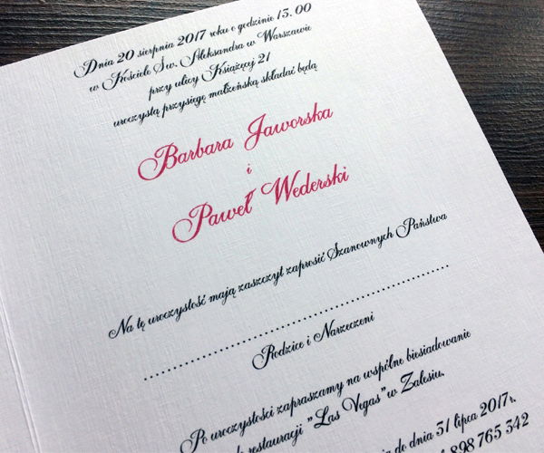 - Zaproszenia przed złożeniem: ok. 15 cm x 29 cm