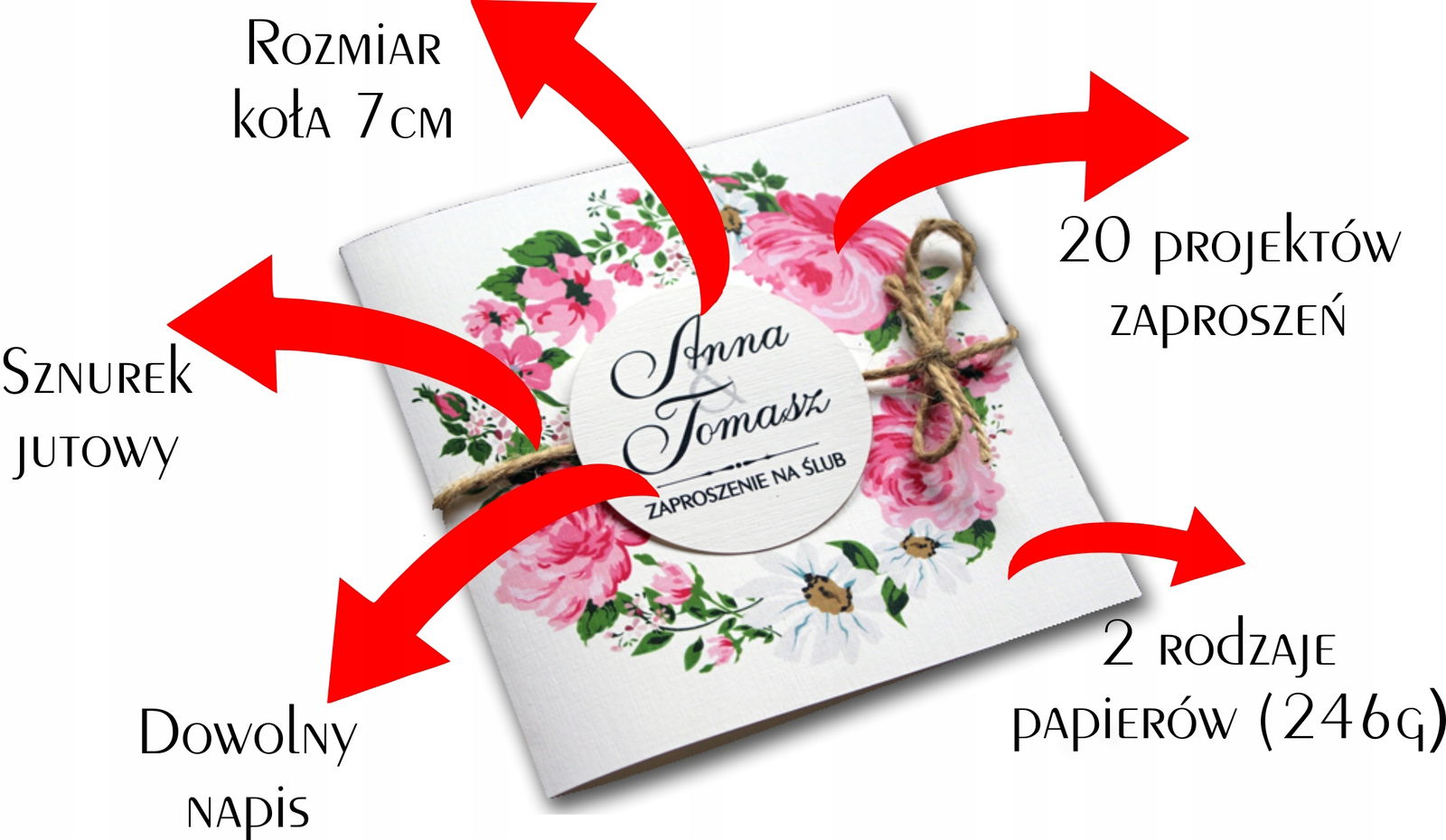 - Nadruk dowolnej treści zaproszenia/zawiadomienia bez limitu znaków