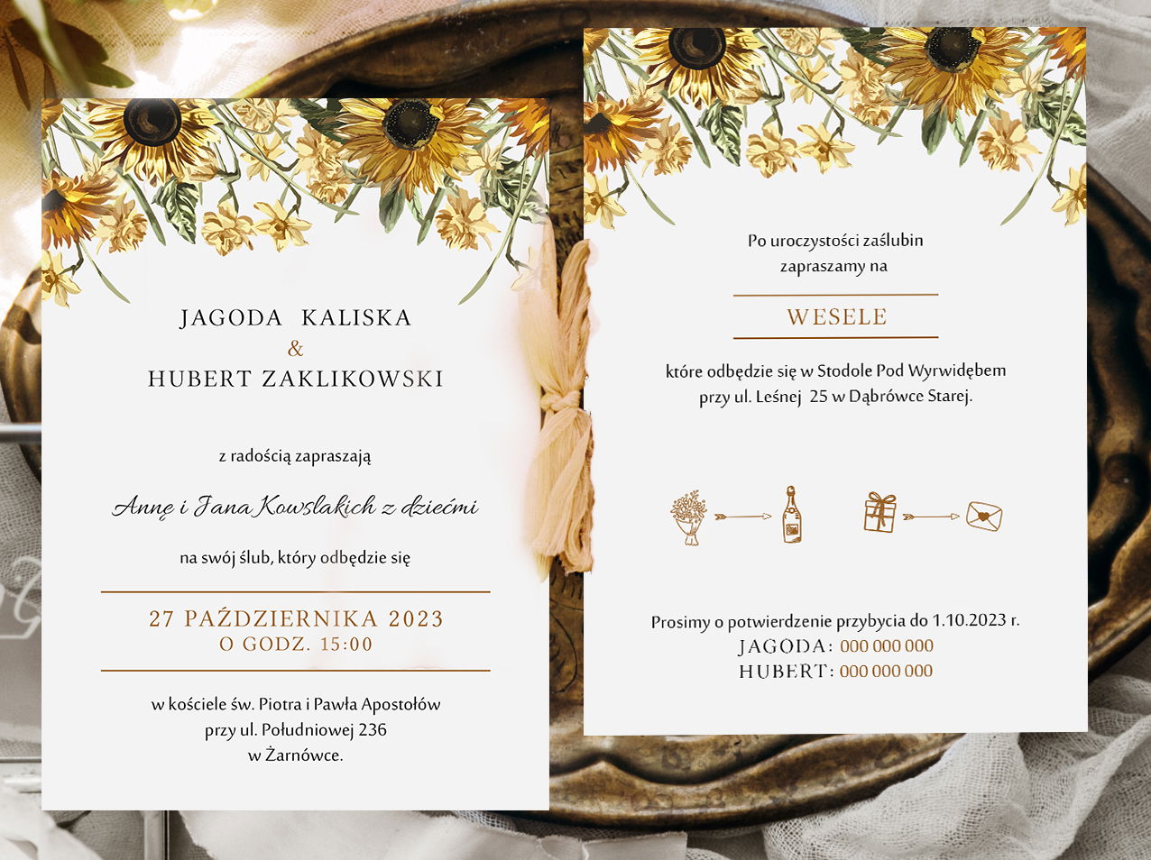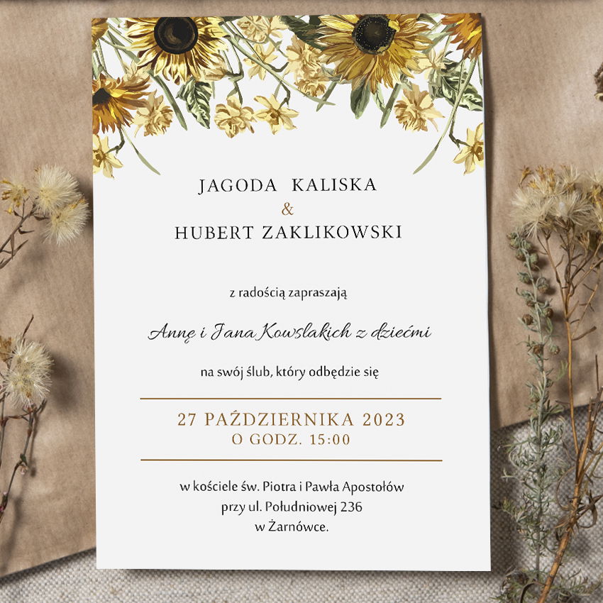 Zaproszenia ślubne Słoneczniki - jednokartkowe