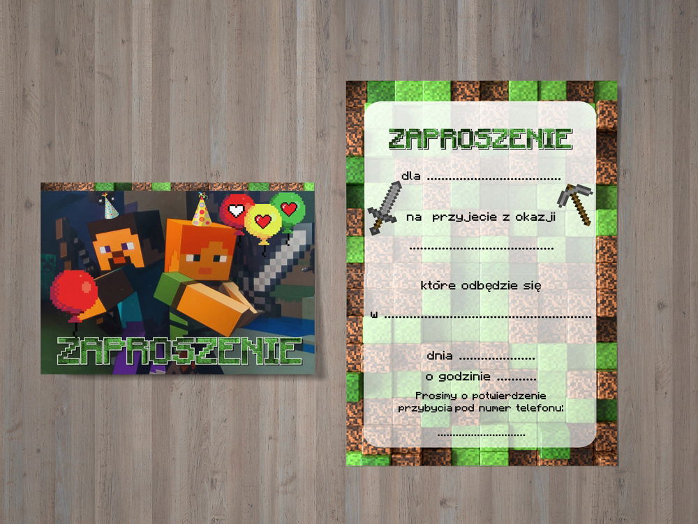 Zaproszenia Urodziny dla Dzieci Minecraft PR 298