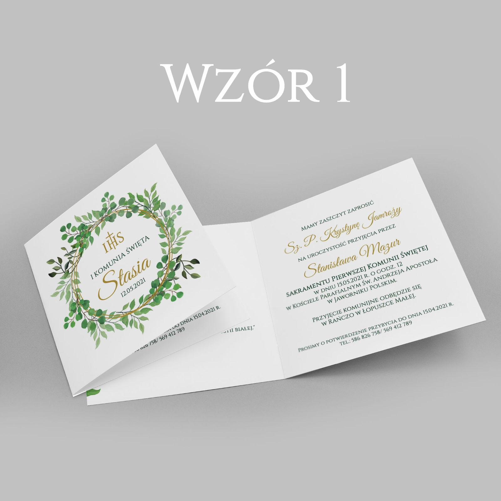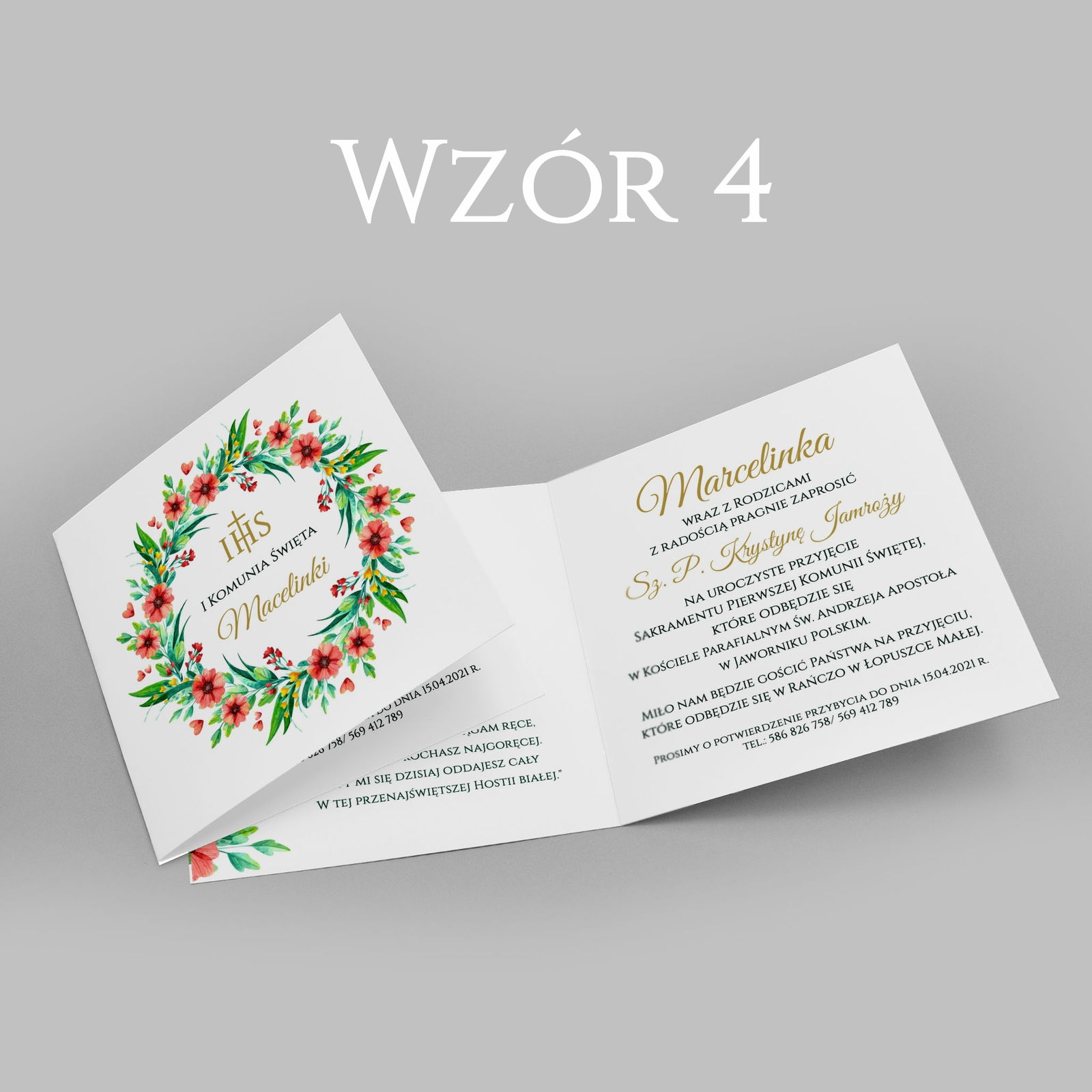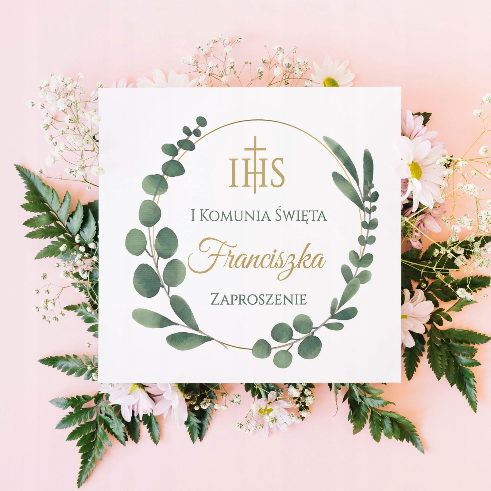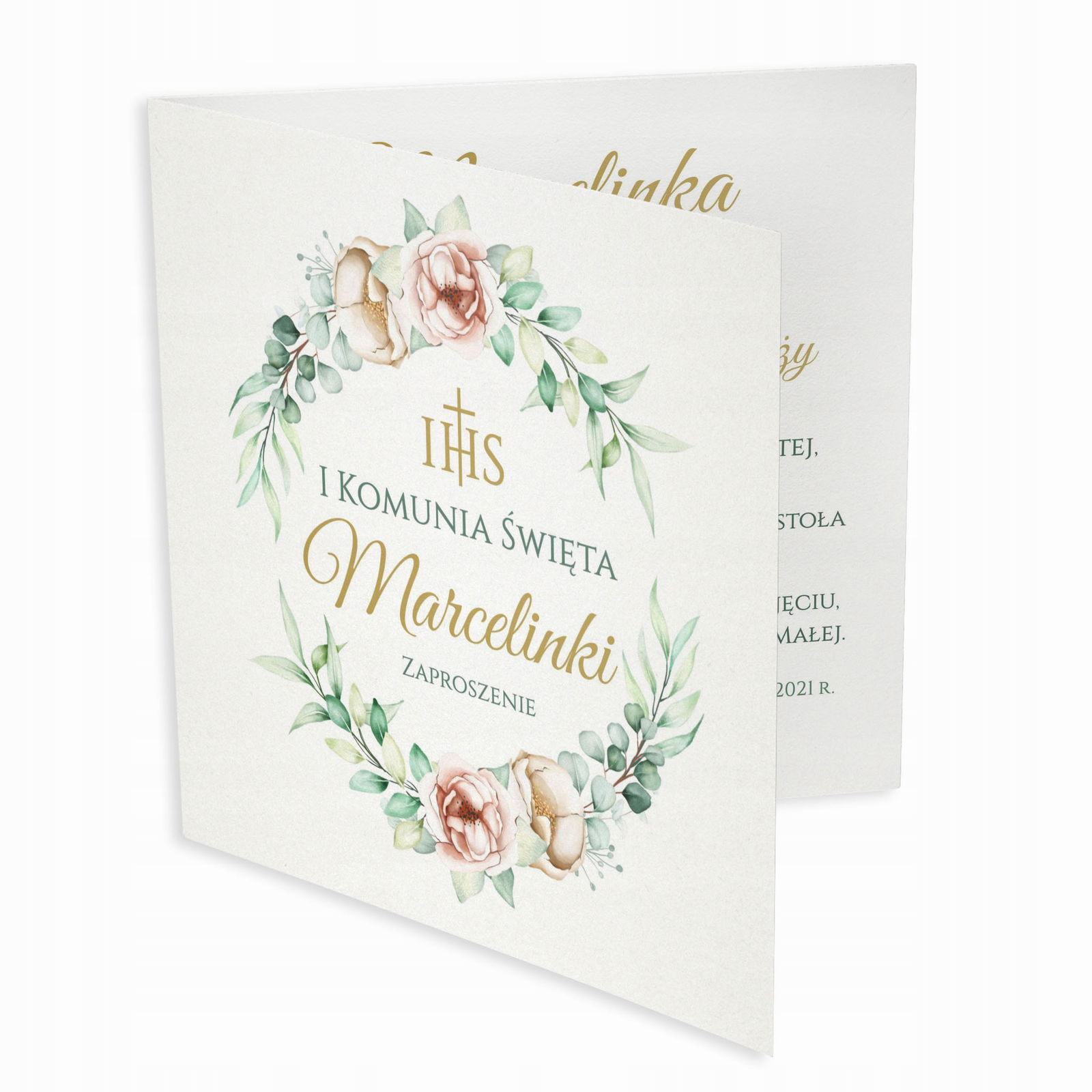 Zaproszenie komunijne z kopertą, kwiaty wianki 10 szt.