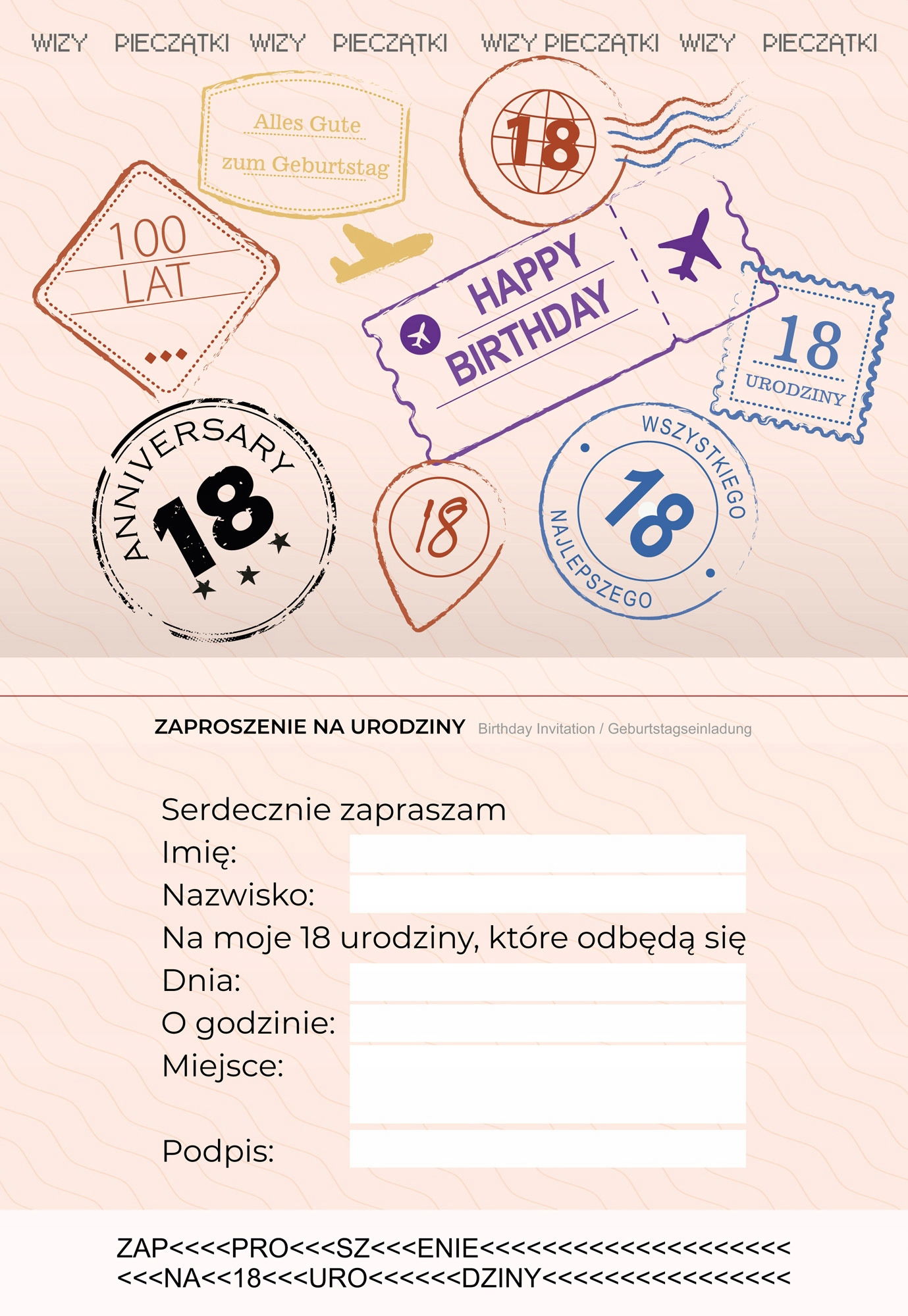 ZAPROSZENIA Zaproszenie na 18 urodziny Paszport