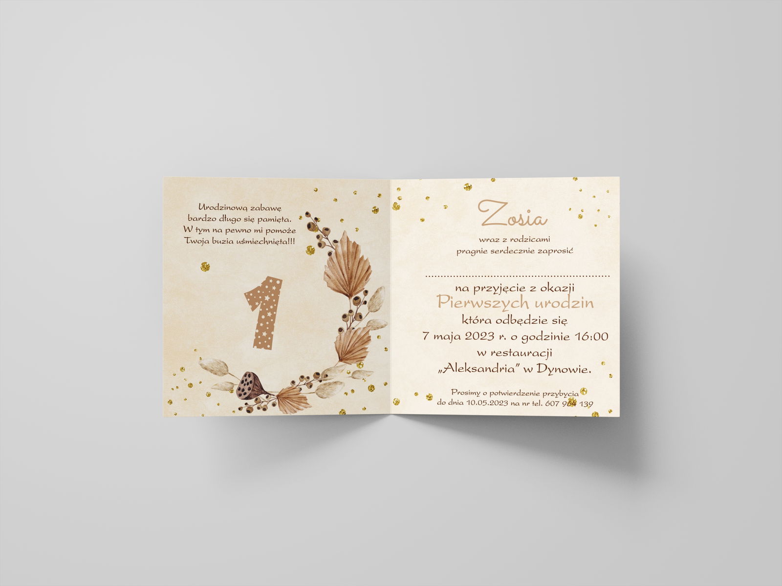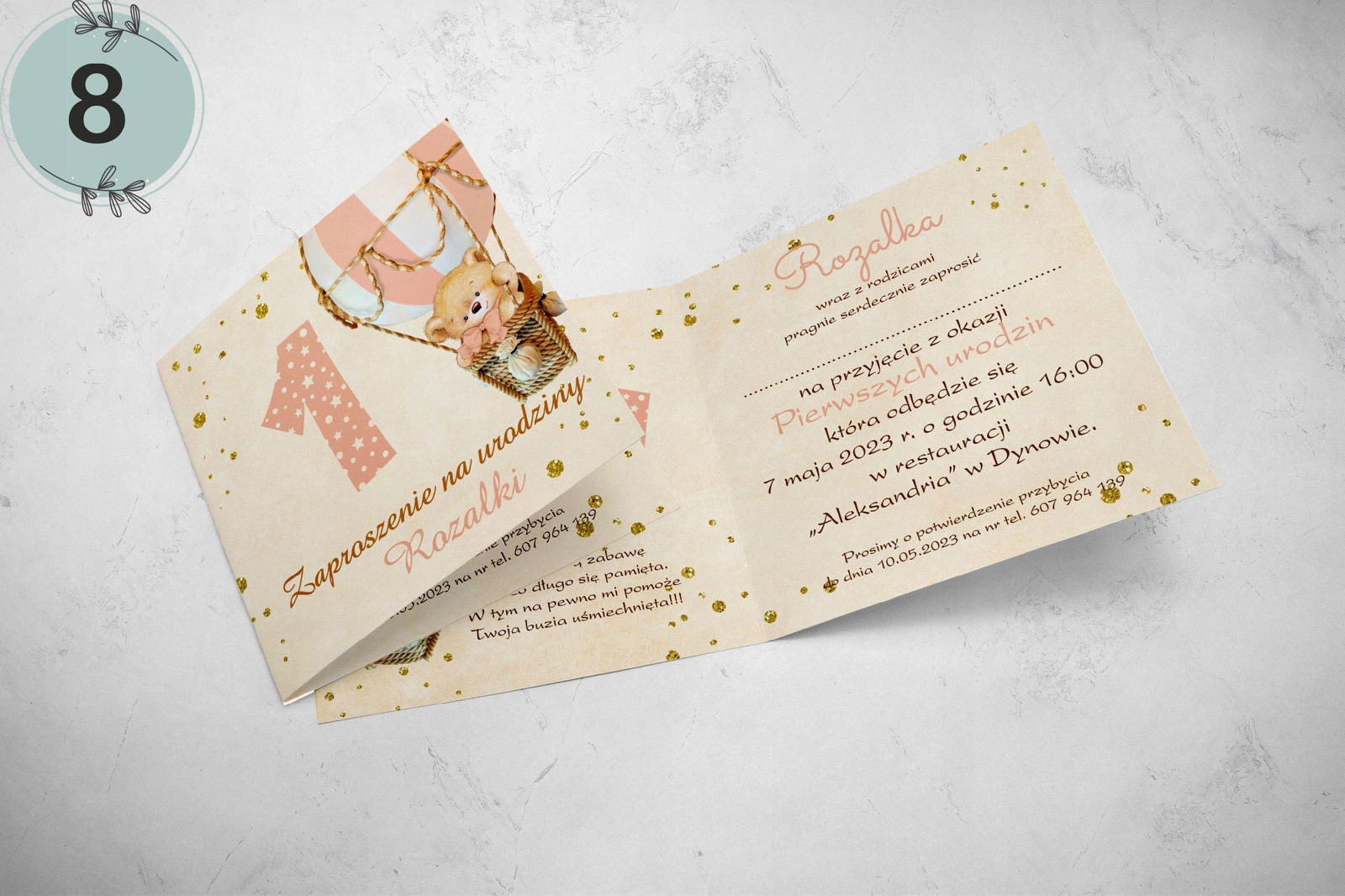 Zaproszenia przed złożeniem: 28 cm x 14 cm zaproszenie po złożeniu: 14 cm x 14 cm