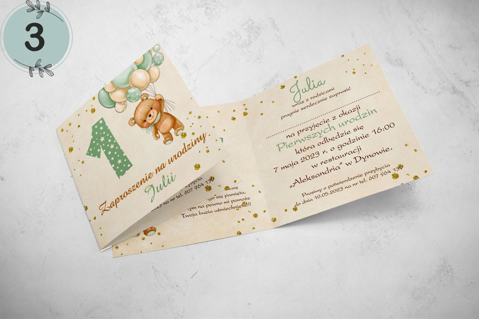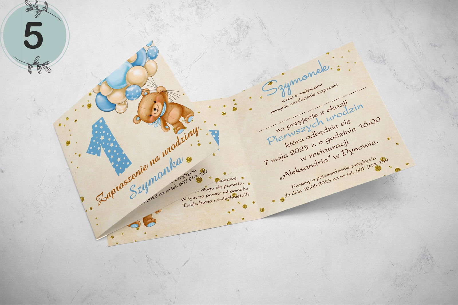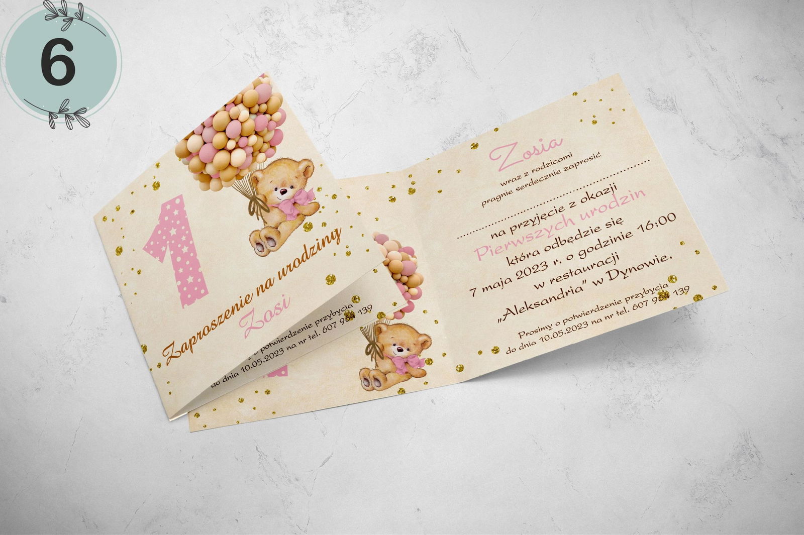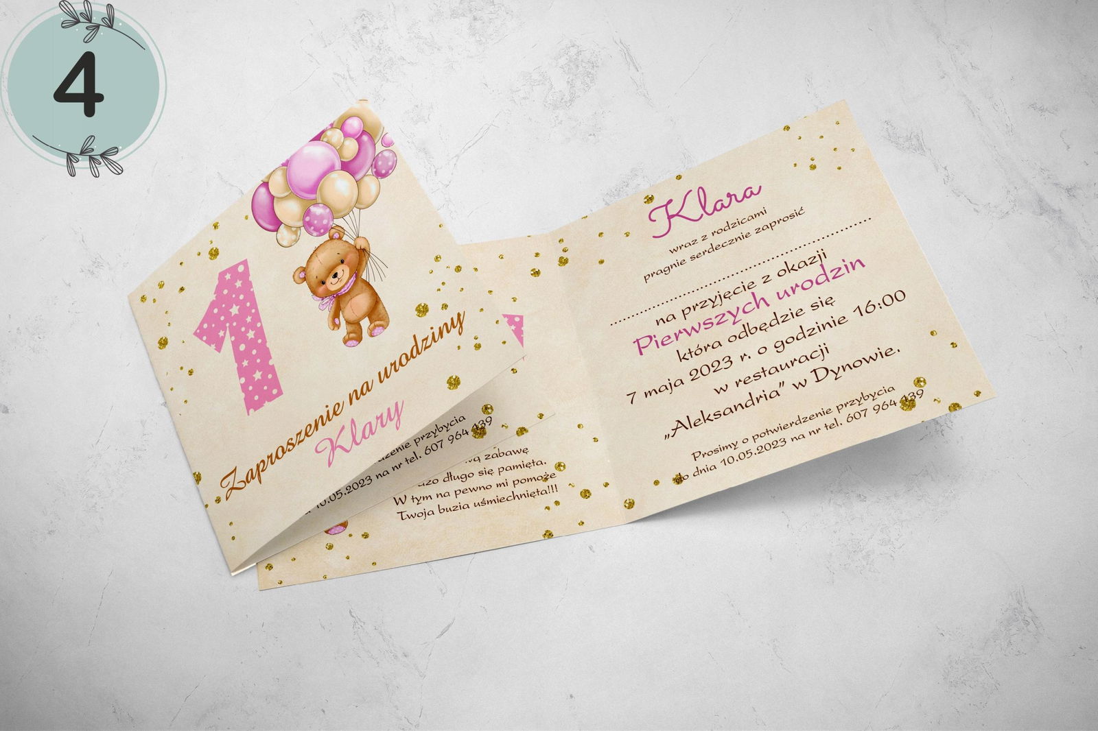 - dane: imię dziecka, data i godzina chrztu, kościół, miejsce przyjęcia.