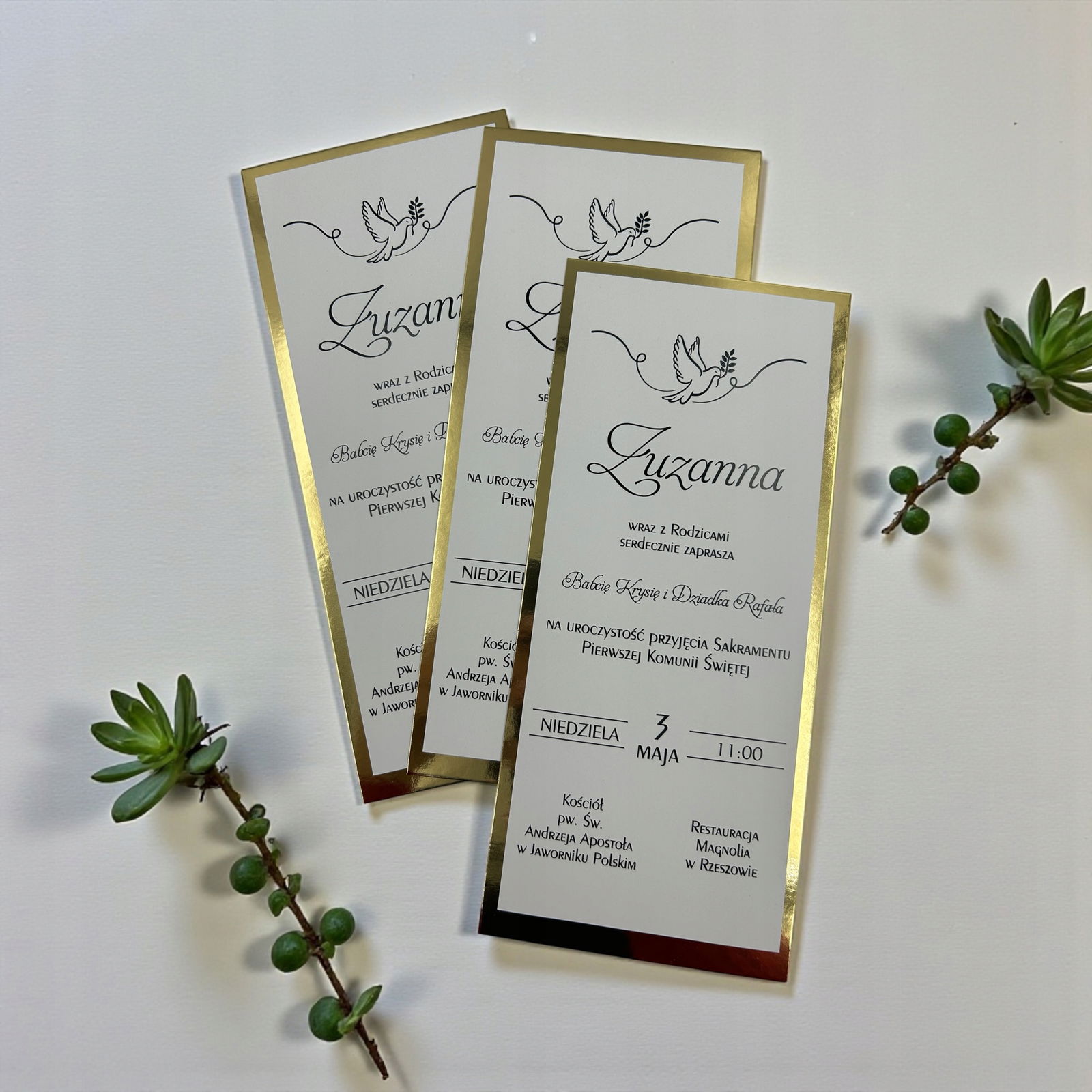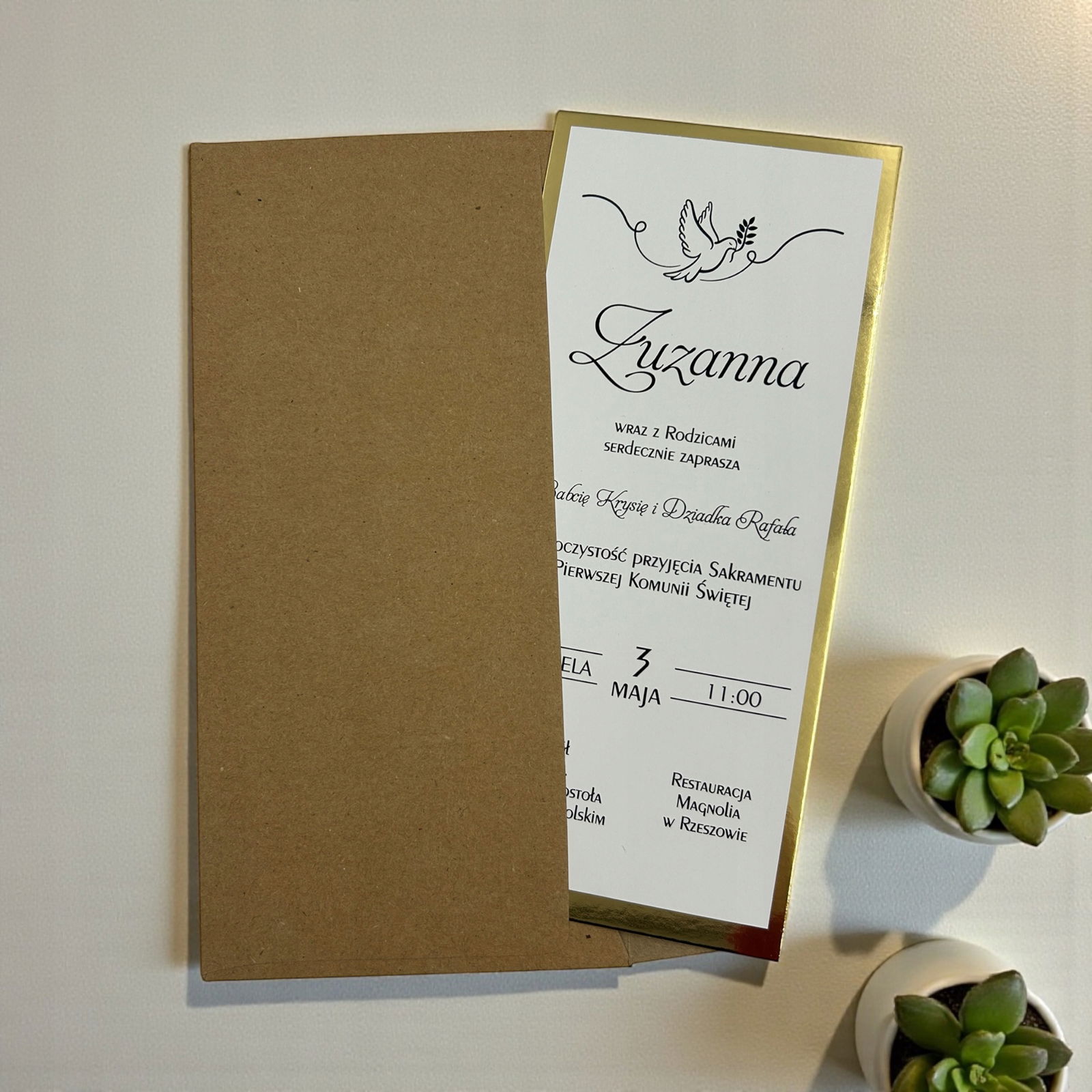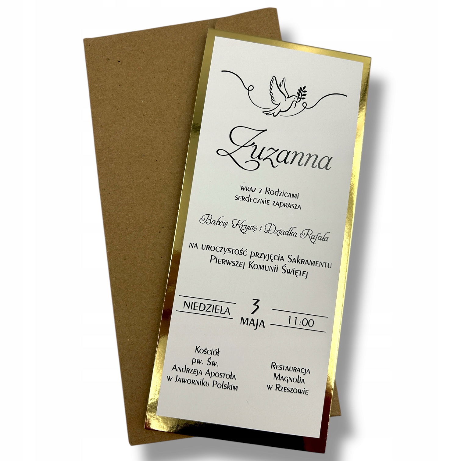 Zaproszenie na Pierwszą Komunię Świętą Zaproszenia złote koperta ZAP12