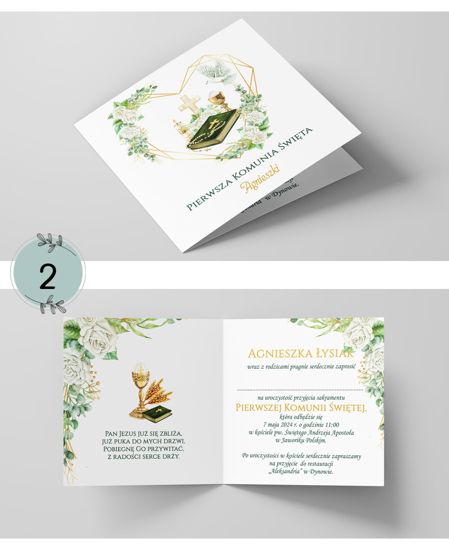 Zaproszenia przed złożeniem:ok. 14 cm x 28 cm zaproszenie po złożeniu:ok. 14 cm x 14 cm