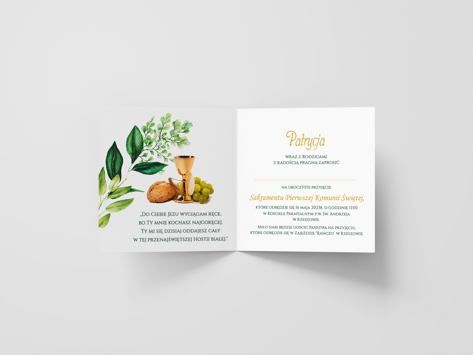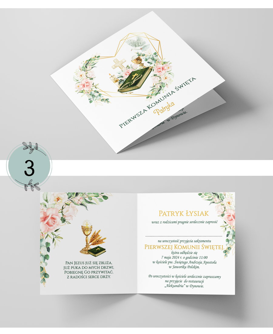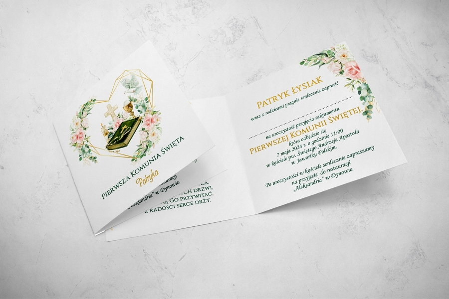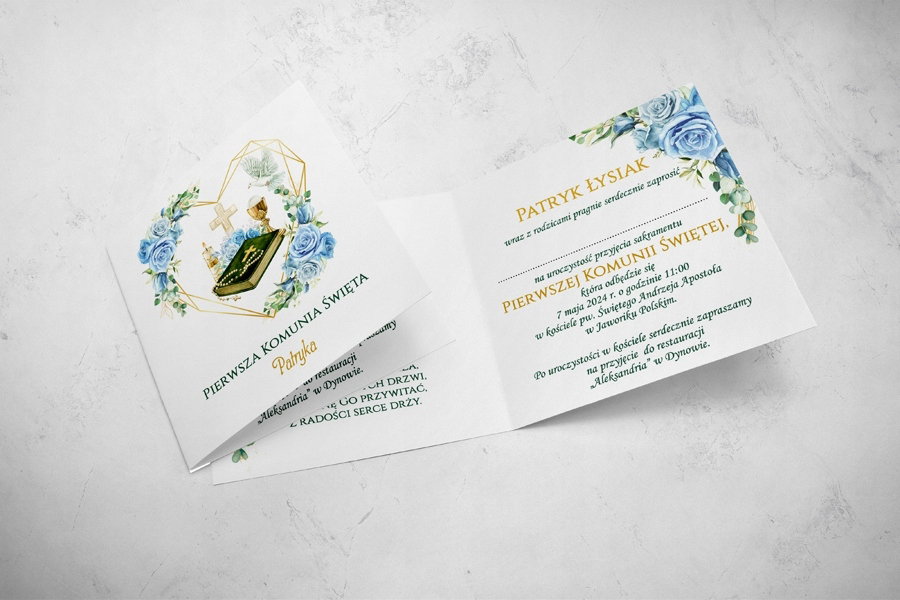 dane potrzebne do uzupełnienia (imię i nazwisko dziecka, data i godzina uroczystości, kościół, miejsce przyjęcia )