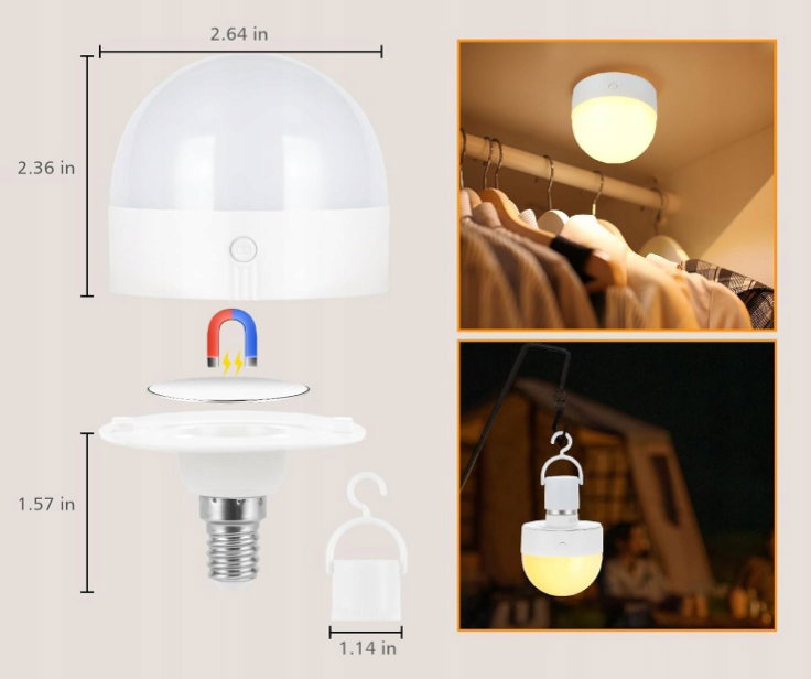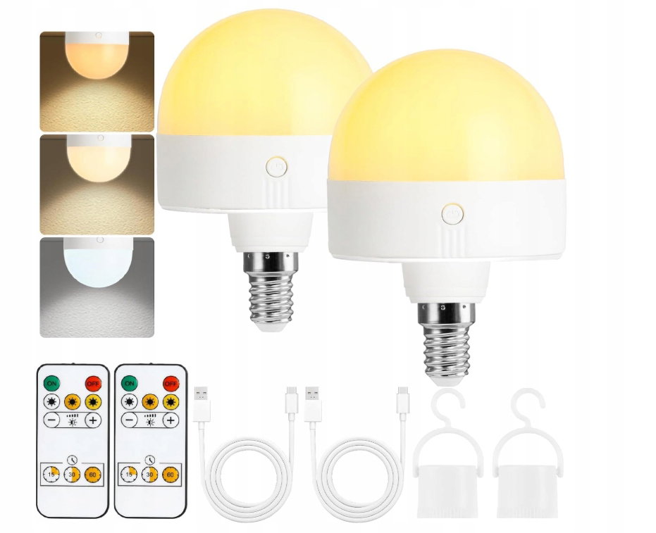 - ✴️Akumulatorowa żarówka LED: Ta zasilana bateryjnie żarówka LED ma odłączaną konstrukcję ładowania. Do jej ładowania można użyć dołączonego kabla USB-C. Akumulator żarówki E14 ma pojemność 2000 mAh, pełne naładowanie trwa 3 godziny i wystarcza na 12-36 godzin pracy. Pożegnaj się z częstą wymianą baterii i obawami o wycieki!