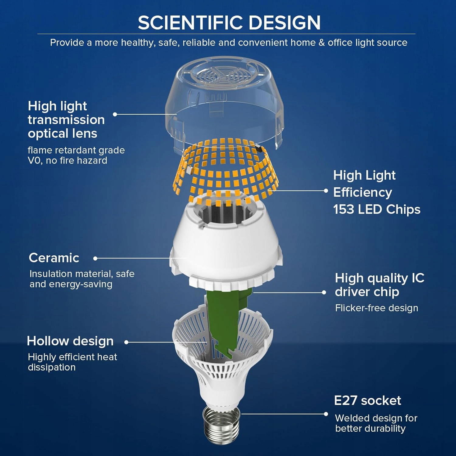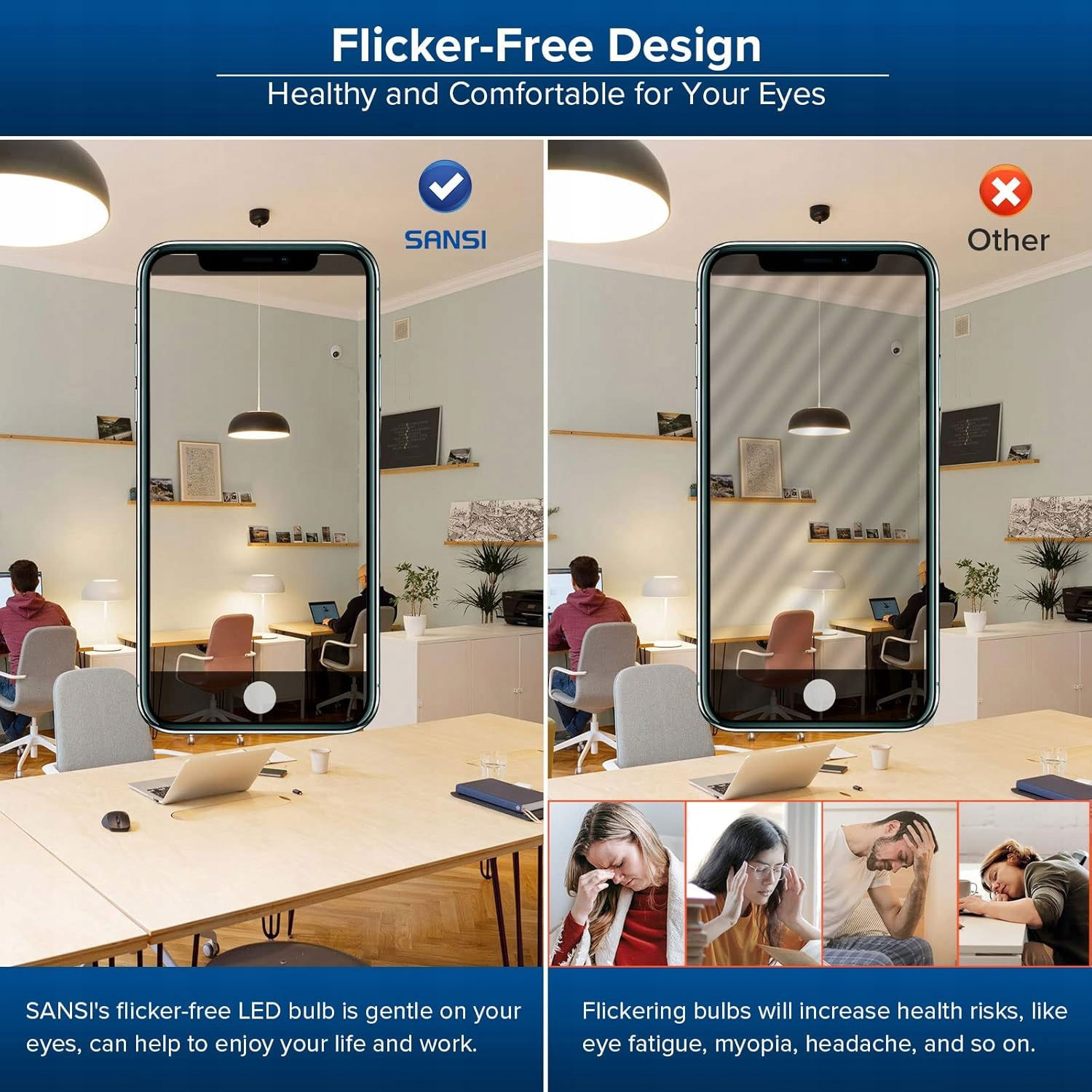 Zamieniając klasyczną żarówkę 250 W na SANSI, oszczędzasz aż 90% na energii. Komfortowe, bezmigotliwe światło 3000K/5000K minimalizuje zmęczenie oczu.