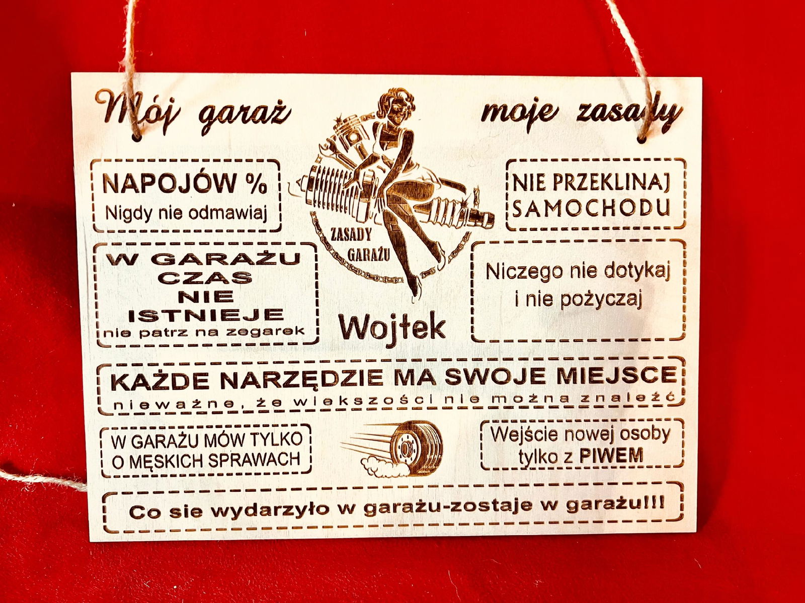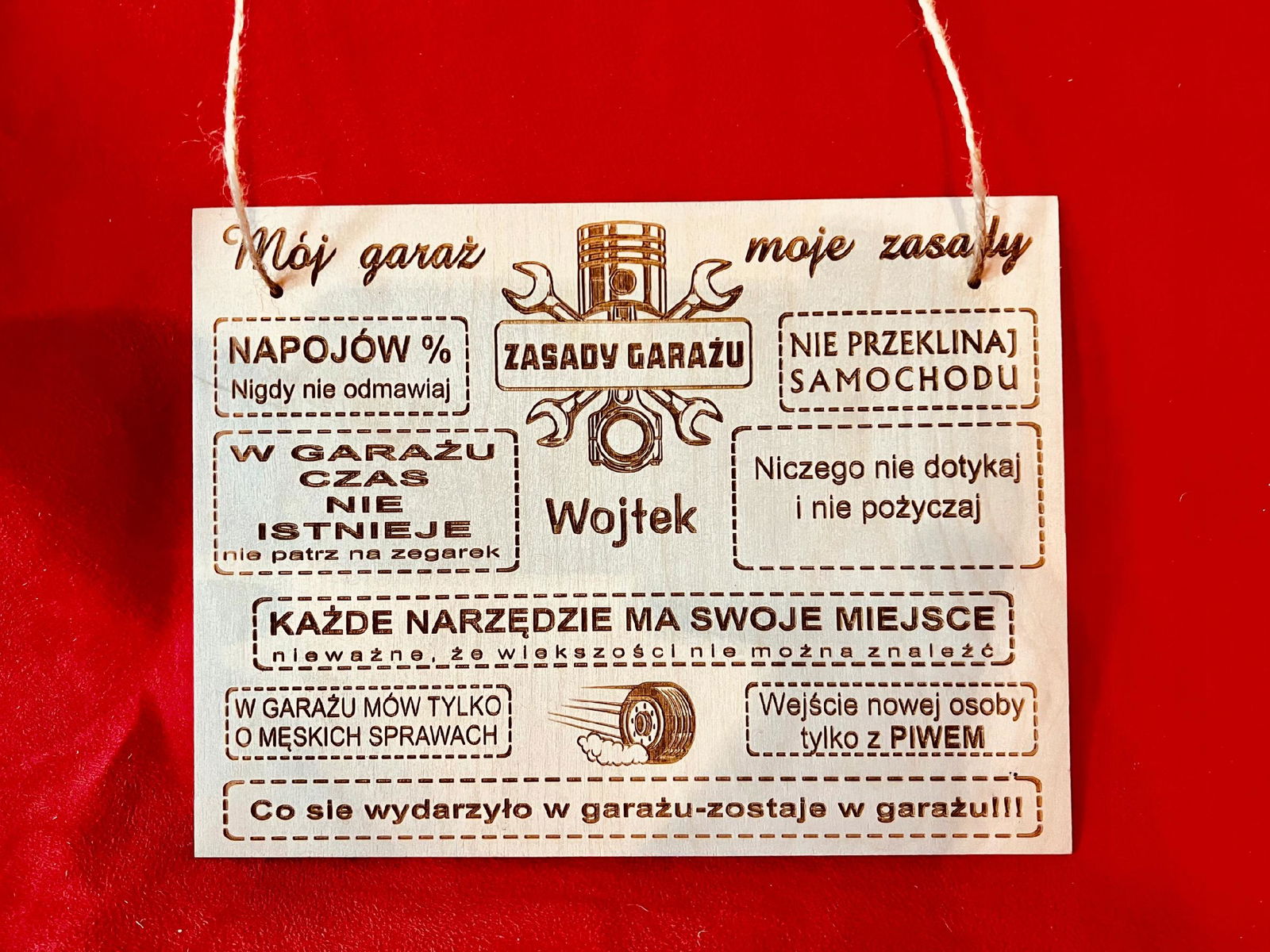 ZASADY GARAŻU DREWNIANA TABLICZKA TANIA
