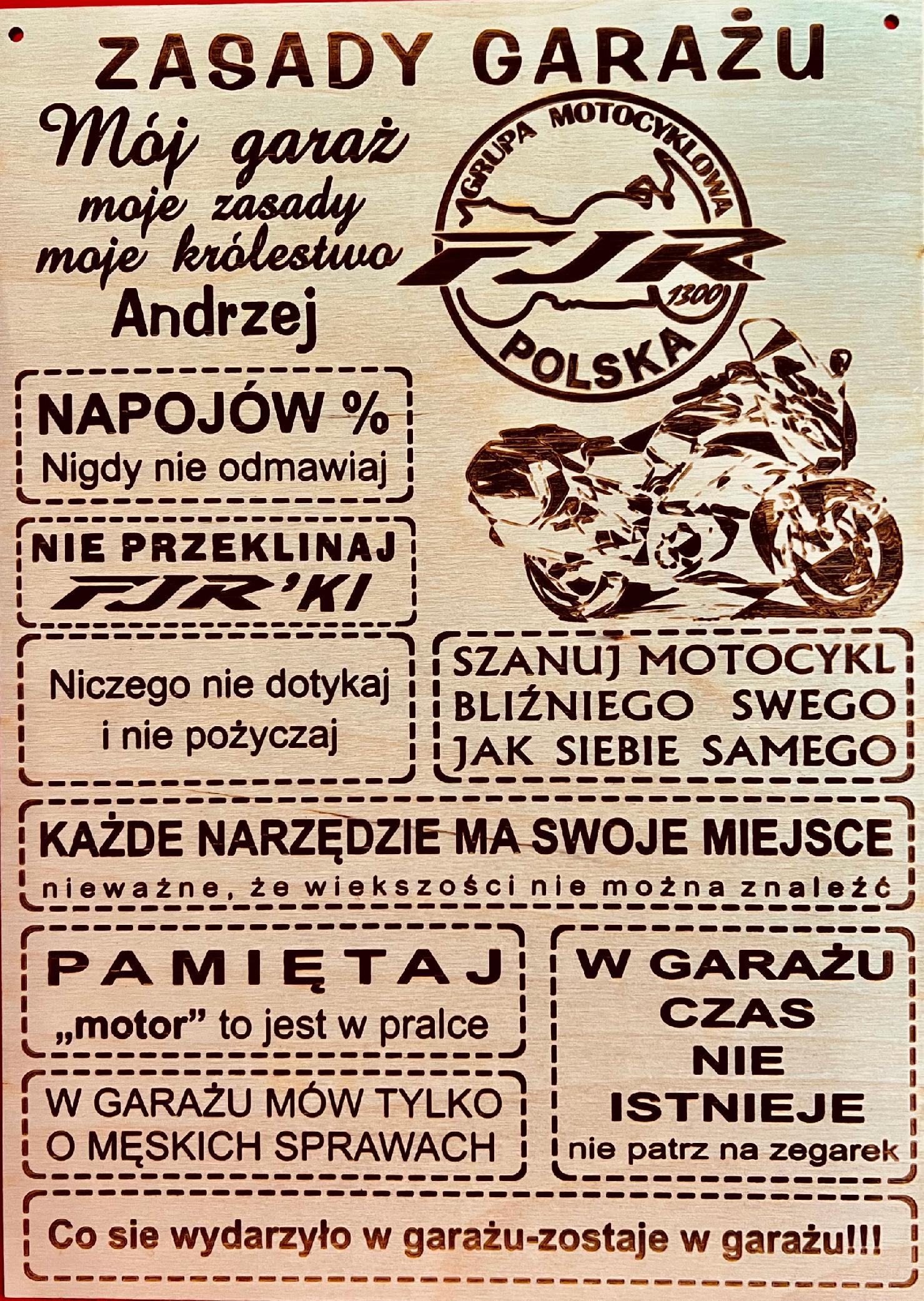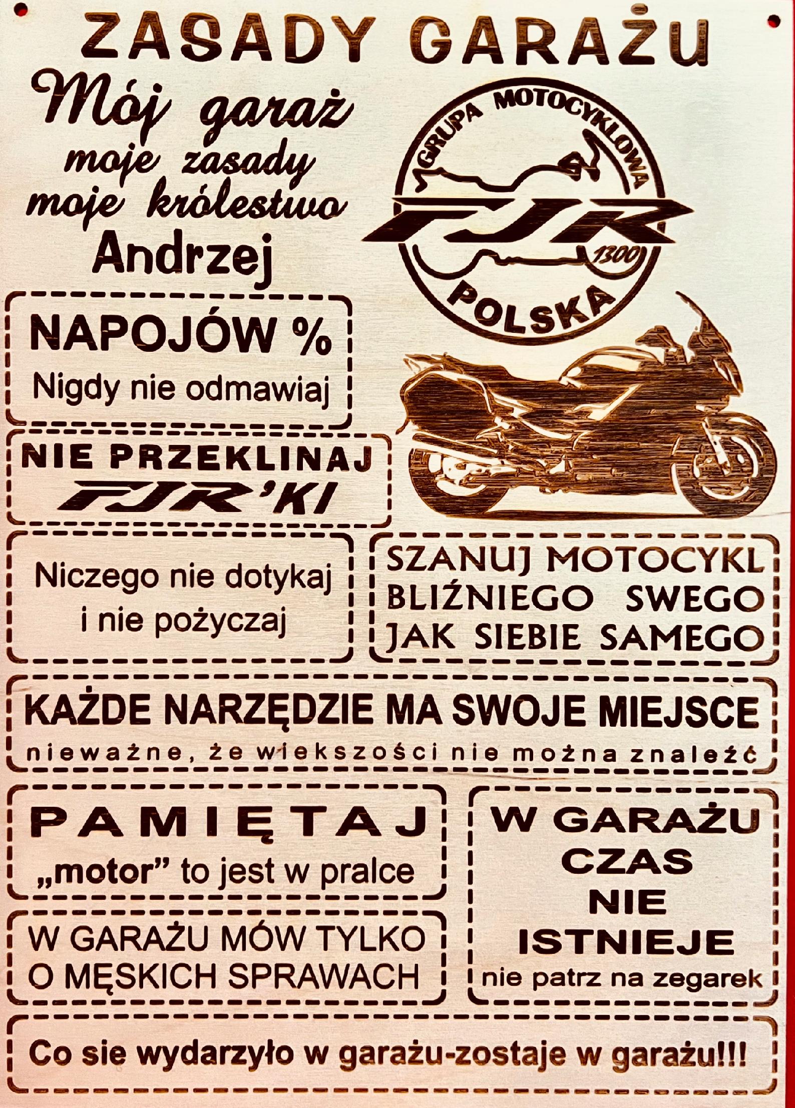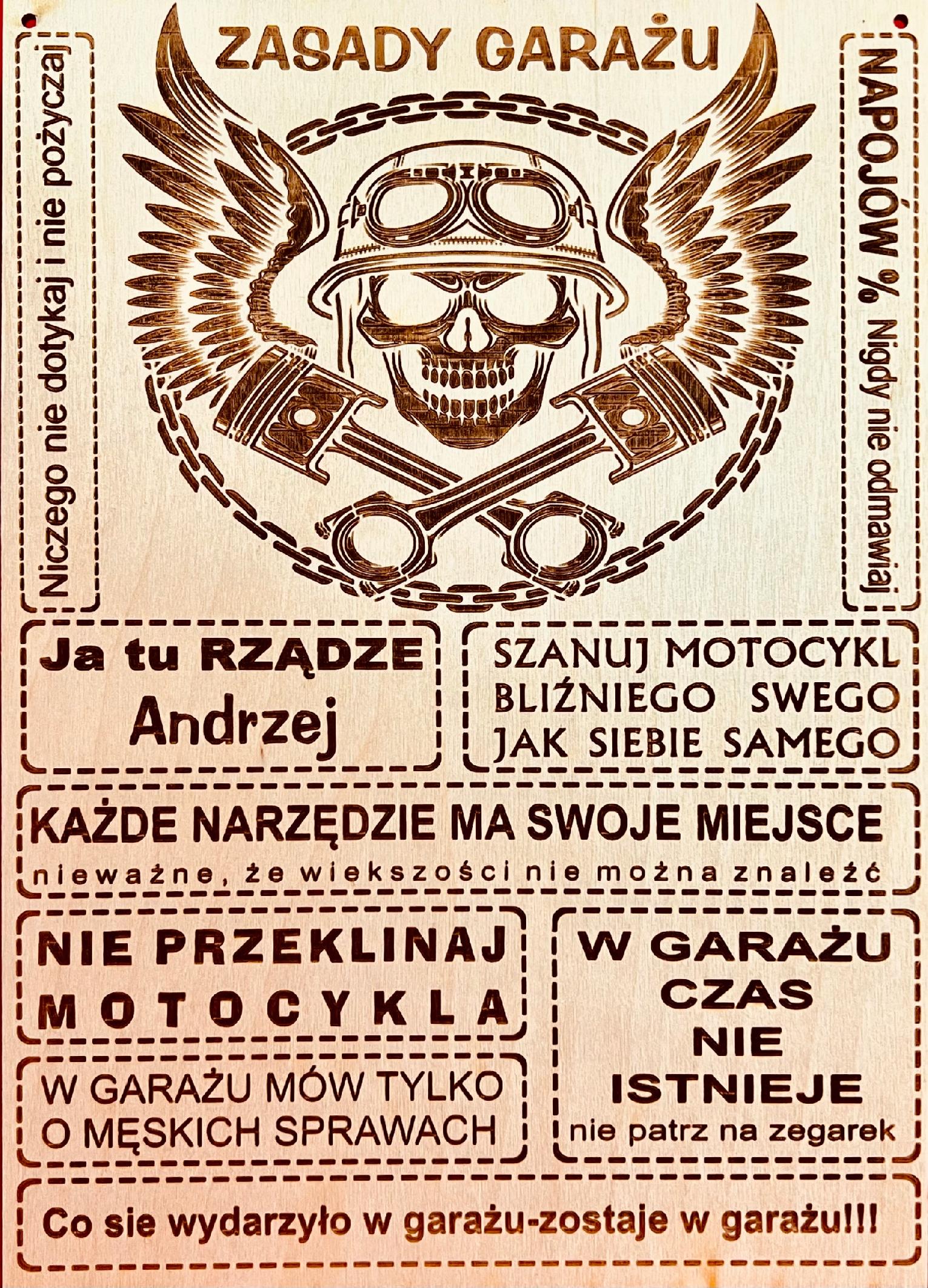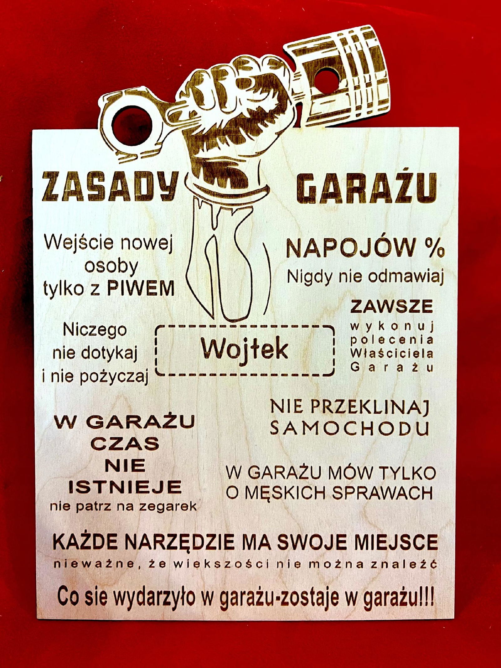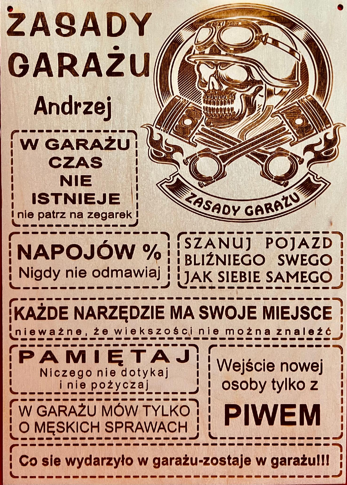 DREWNIANA TABLICZKA ZASADY GARAŻU