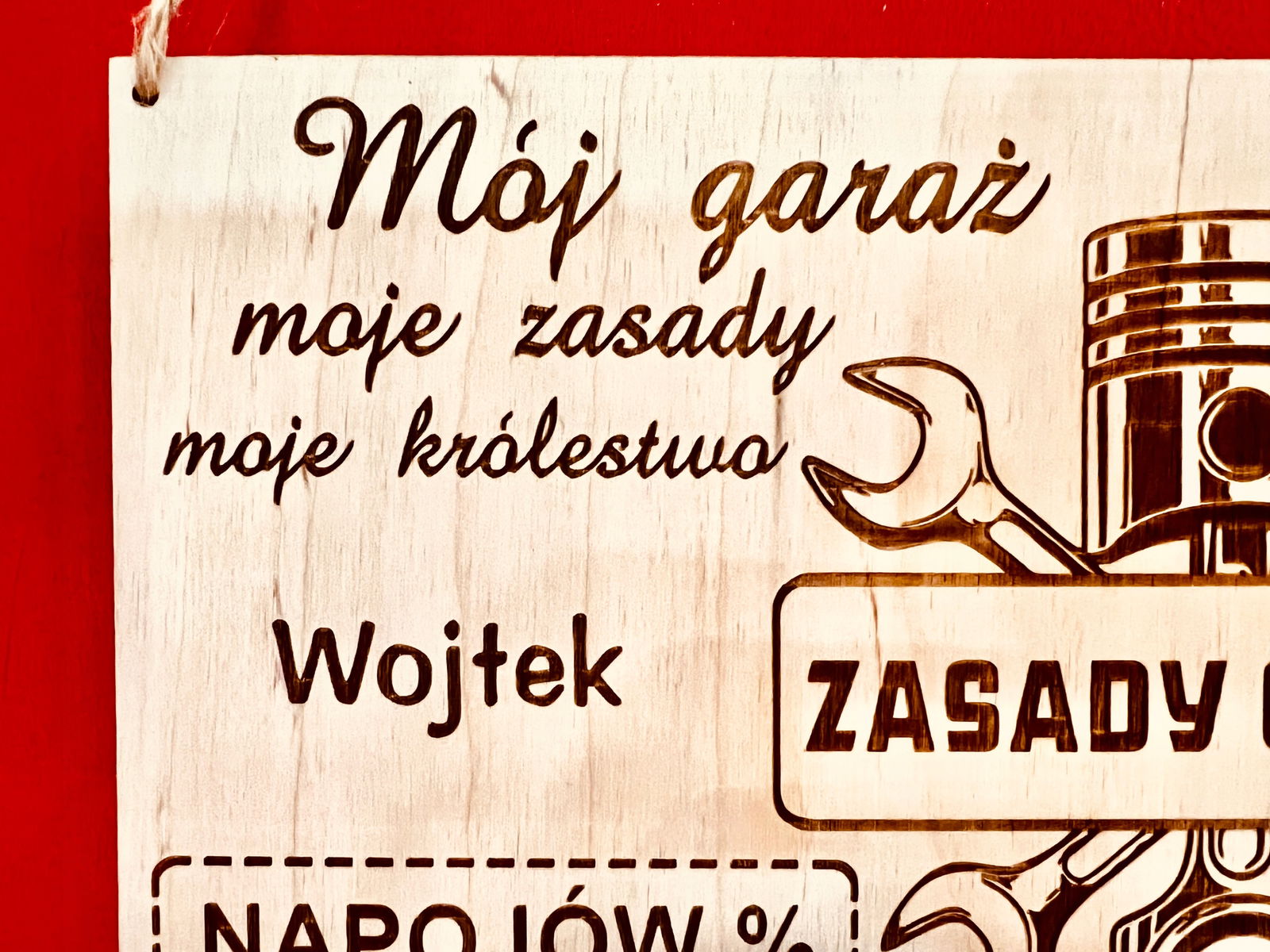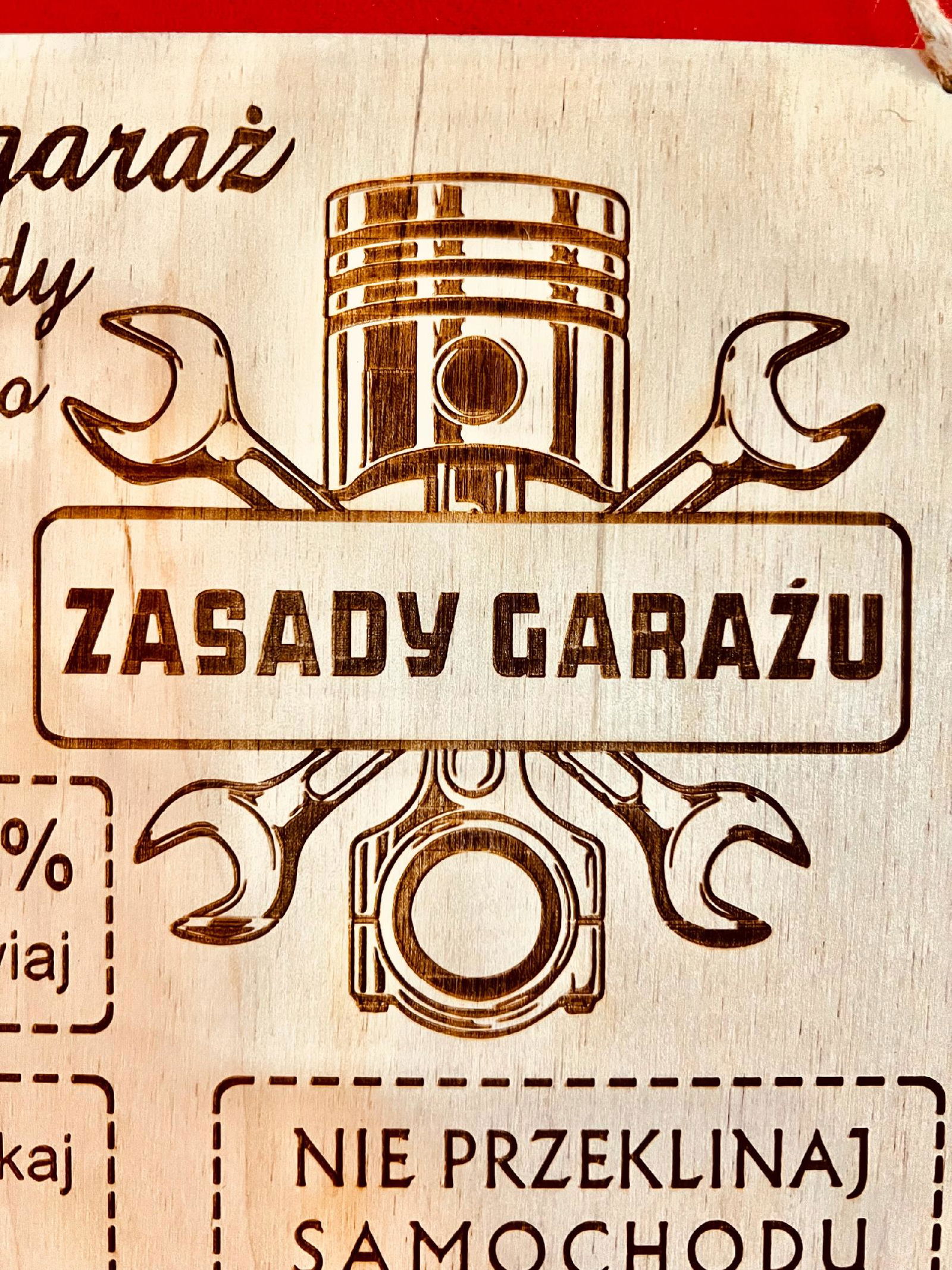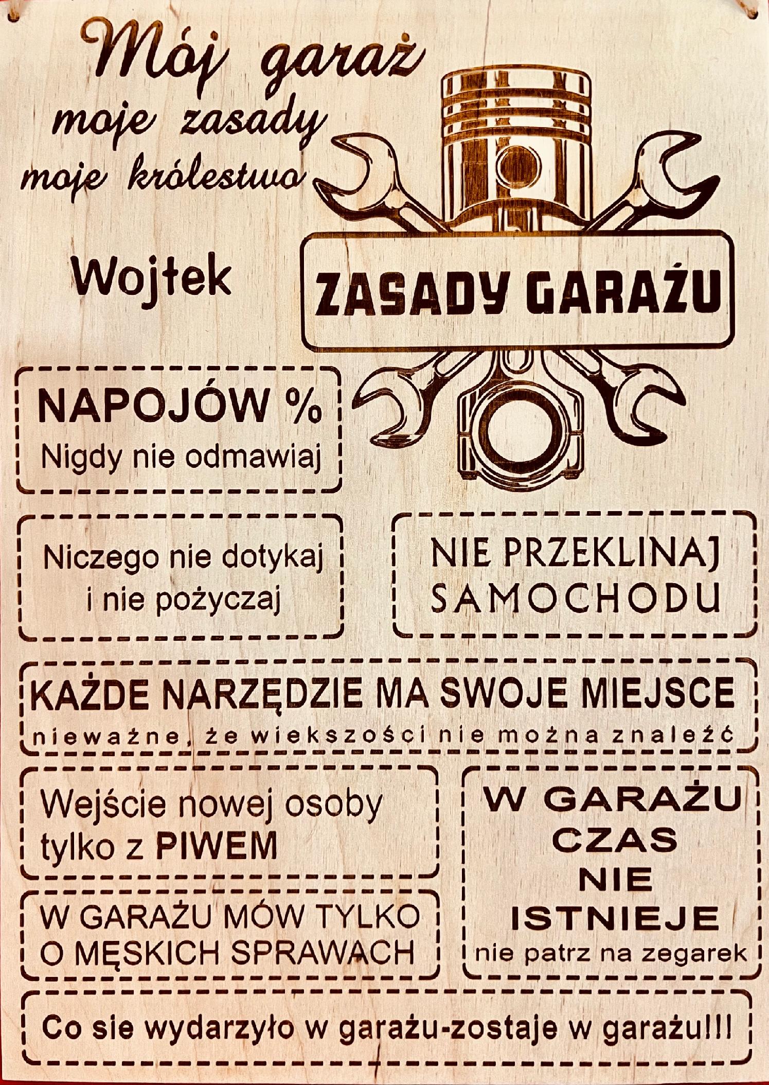 ZASADY GARAŻU - Tablica drewniana GRAWER - LASER