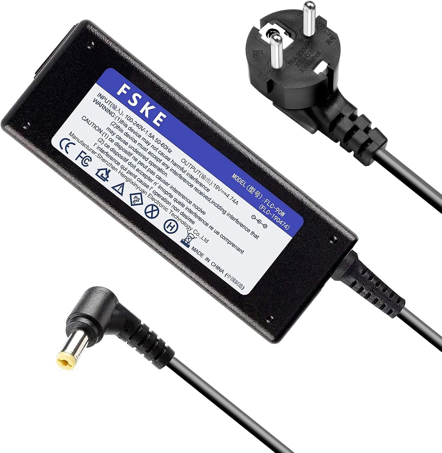 ✅ FSKE Ładowarki i zasilacze do komputerów przenośnych do Acer, Packard Bell. Wejście: 100-240 V, 50-60 Hz. Maksymalne wyjście: 19 V 4,74 A 90 W, kompatybilne wyjście: 19 V 3,42 A 65 W, 19 V 2,37 A 45 W, 19 V 2,15 A 40 W, 19 V 1,58 A 30 W. Zasilacz ACER Całkowita długość kabla wynosi 2,7 m. Ładowarka do laptopa Acer jest uniwersalna do oryginalnych adapterów ACER o rozmiarze interfejsu 5,5 mm x 1,7 mm. Tylko część wymienionych kompatybilnych modeli laptopów. Przed zakupem należy sprawdzić napięcie.