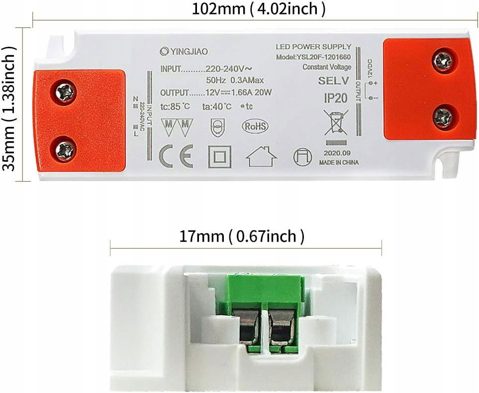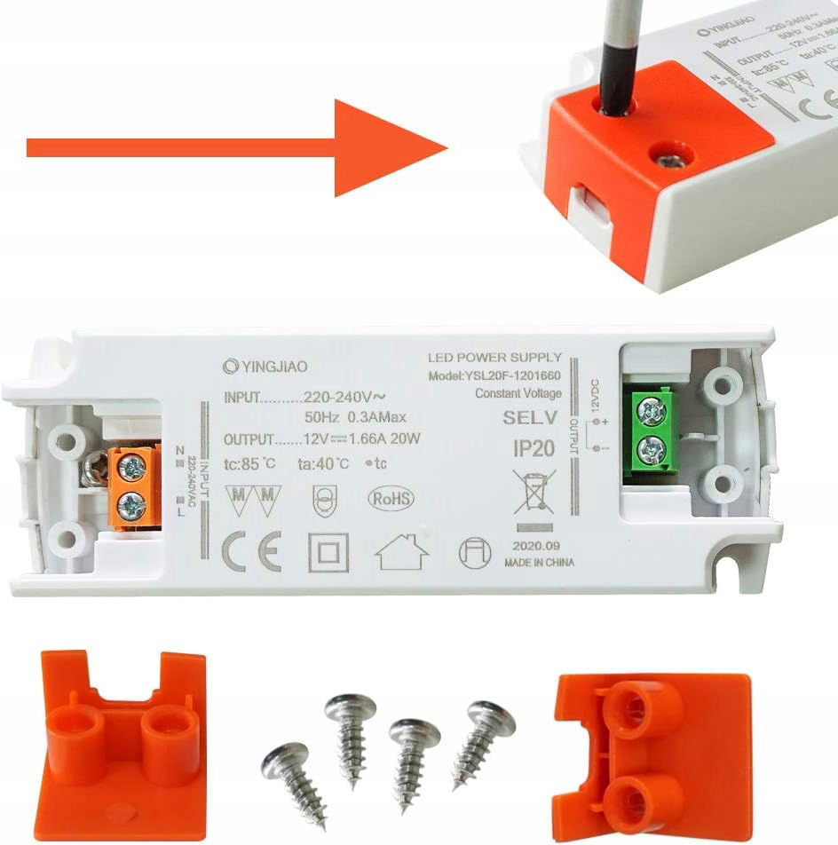 - Stałe Napięcie 12V DC: Napięcie wyjściowe: 12 V DC 1,66 A, 0-20 W. Idealny do LED: Paski LED, żarówki GU10, G4, MR16, MR11.