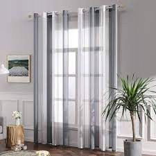 Zasłona kółka 245 cm x 140 cm, szare pasy, półprzezroczyste 2 sztuki