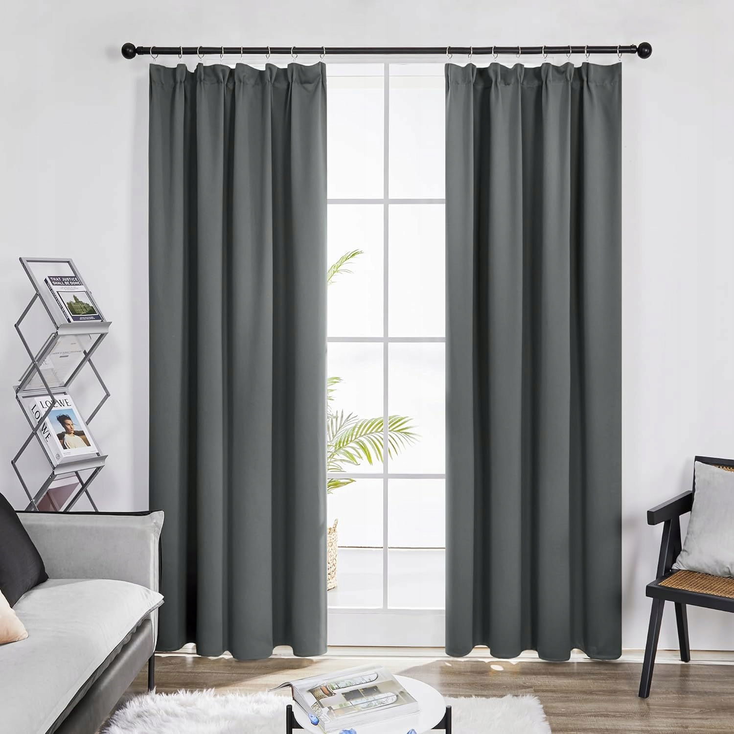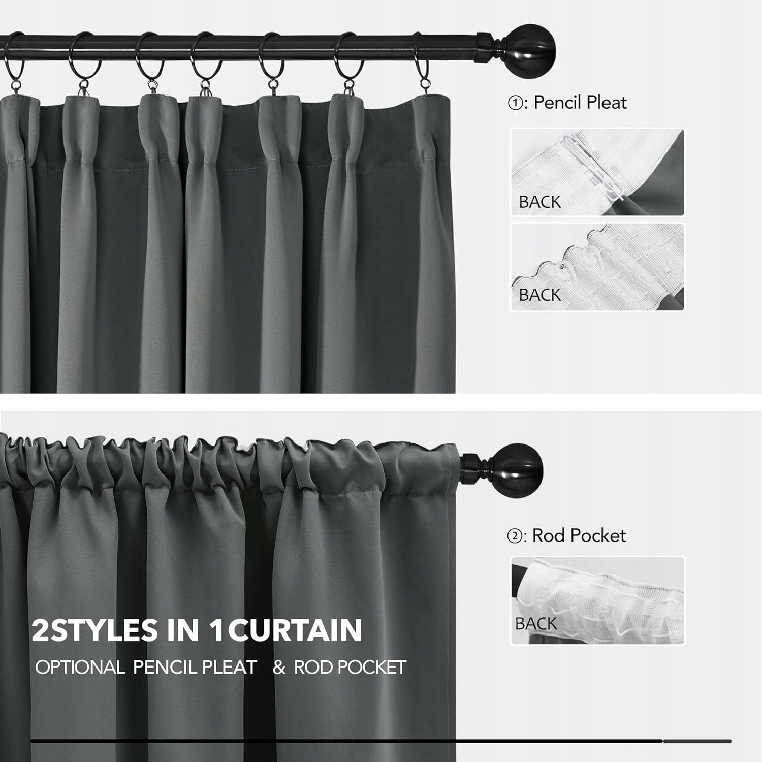 Deconovo Super miękkie termoizolacyjne ołówkowe plisowane zasłony zasłony zaciemniające do kuchni 2,29 x 2,29 cm, ciemnoszare - 1 sztuka