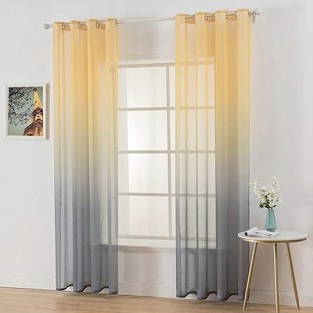 MIULEE Zestaw 2 zasłon z woalu gradientowego z przelotkami i moskitierą w poliestrze, dwa kolory, półprzezroczysta dekoracja do salonu, sypialni, biura, 140 x 260 cm