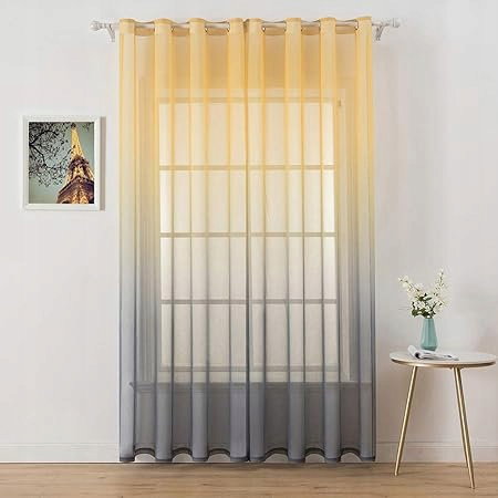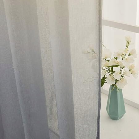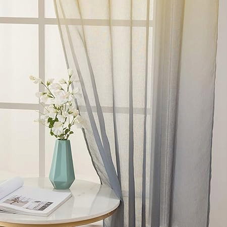 Materiały wysokiej jakości: bardzo wytrzymała syntetyczna tkanina lniana, tkana w 100% z włókien poliestrowych, wolna od chemikaliów i odporna na rozdarcia. Prać w pralce w zimnej wodzie, ale nie wybielać ani nie czyścić chemicznie. W porównaniu ze zwykłymi ekranami przezroczystymi, te gradientowe ekrany półprzezroczyste nadal zachowują pewien stopień przepuszczalności światła i mogą przepuszczać światło słoneczne bez utraty prywatności.