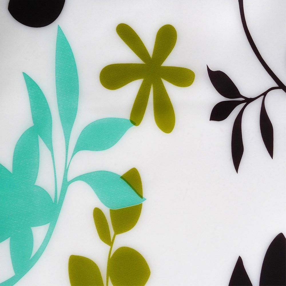 Wysokiej jakości materiał PEVA - Zasłona wykonana z ekologicznego materiału PEVA, który jest wolny od szkodliwych substancji chemicznych, dzięki czemu jest bezpieczny dla zdrowia i środowiska. Zasłona w przezroczystym kolorze z motywem roślin i ptaków. Folia PEVA jest przyjazna dla środowiska, gdyż ulega całkowitej biodegradacji. Haczyki wykonane z tworzywa w białym kolorze.