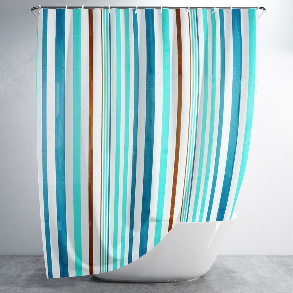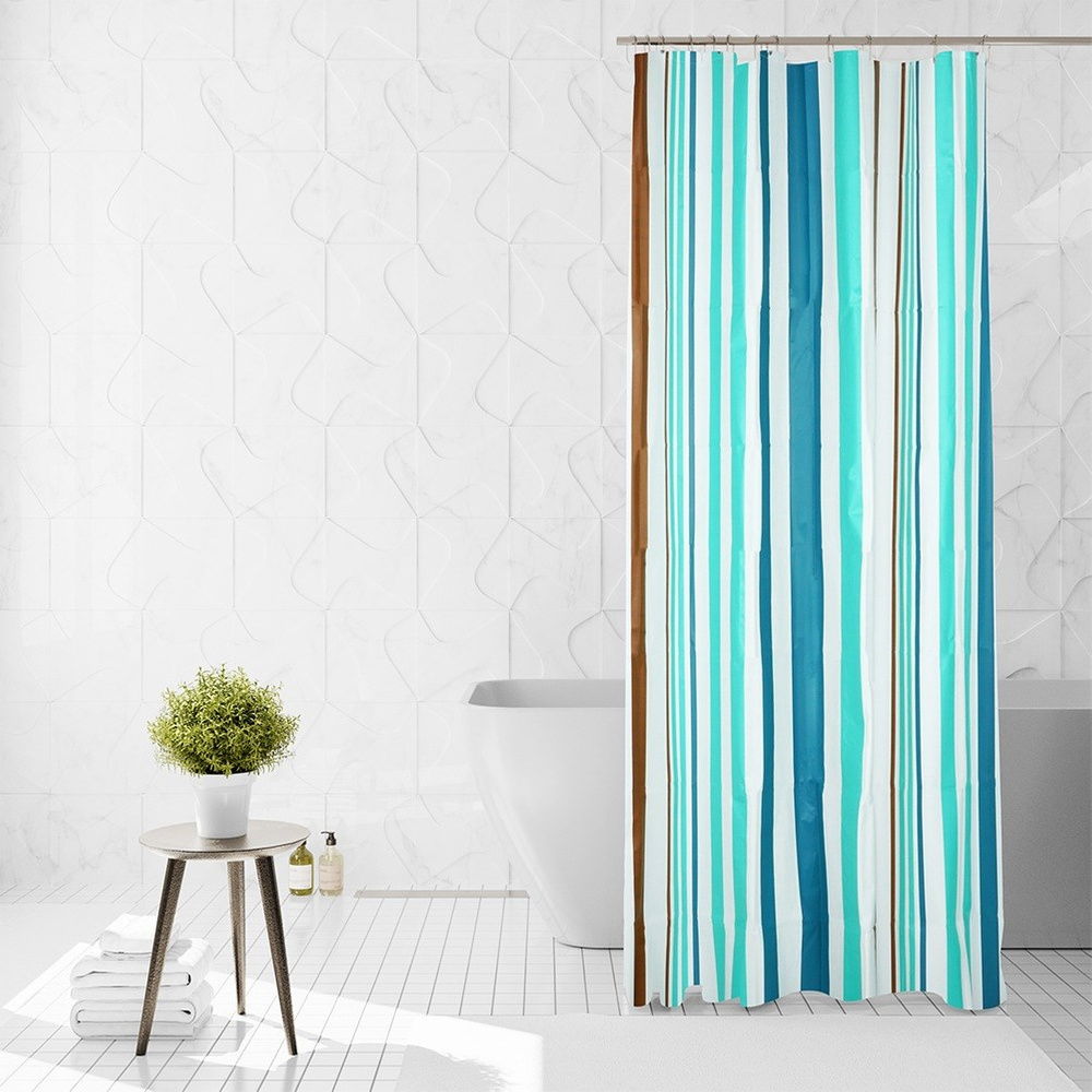 Wysokiej jakości materiał PEVA - Zasłona wykonana z ekologicznego materiału PEVA, który jest wolny od szkodliwych substancji chemicznych, dzięki czemu jest bezpieczny dla zdrowia i środowiska. Zasłona w pionowe pasy w odcieniach niebieskiego. Folia PEVA jest przyjazna dla środowiska, gdyż ulega całkowitej biodegradacji. Haczyki wykonane z tworzywa w białym kolorze.