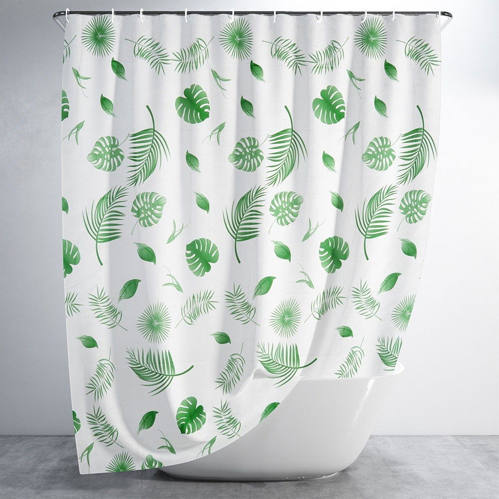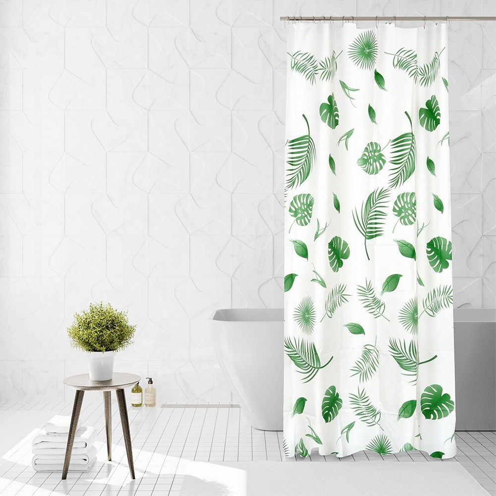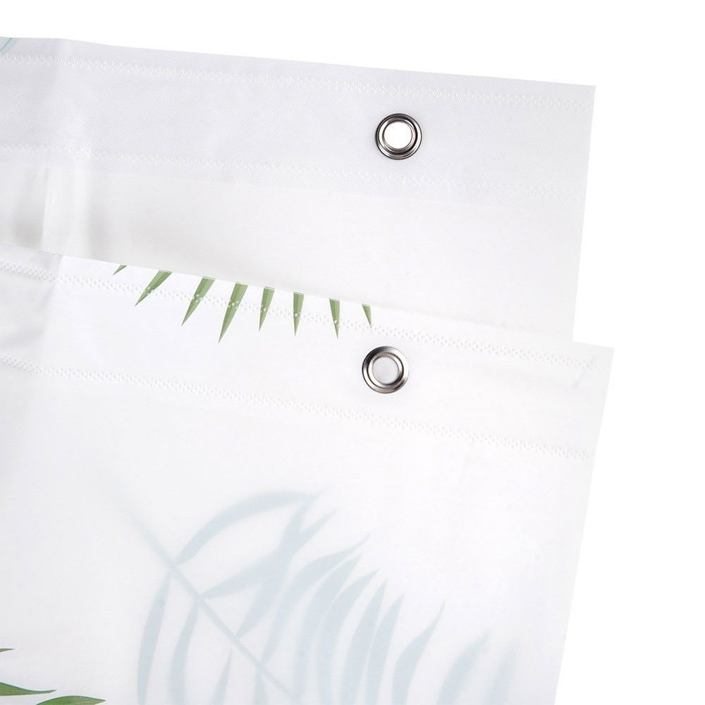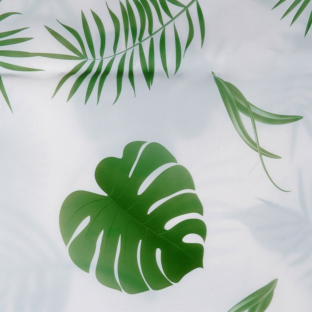 Wysokiej jakości materiał PEVA - Zasłona wykonana z ekologicznego materiału PEVA, który jest wolny od szkodliwych substancji chemicznych, dzięki czemu jest bezpieczny dla zdrowia i środowiska. Zasłona w białym kolorze z motywem zielonych roślin. Folia PEVA jest przyjazna dla środowiska, gdyż ulega całkowitej biodegradacji. Haczyki wykonane z tworzywa w białym kolorze.