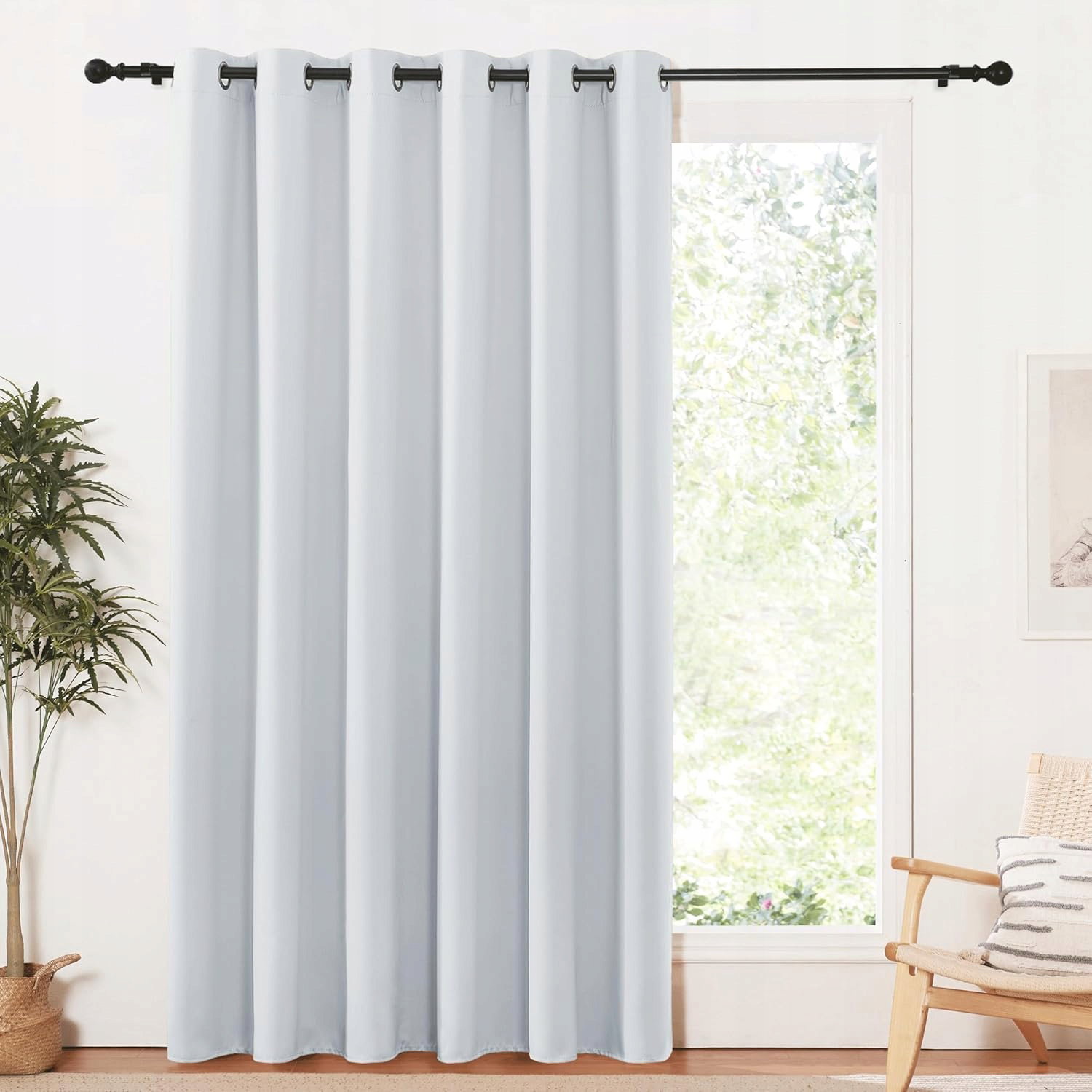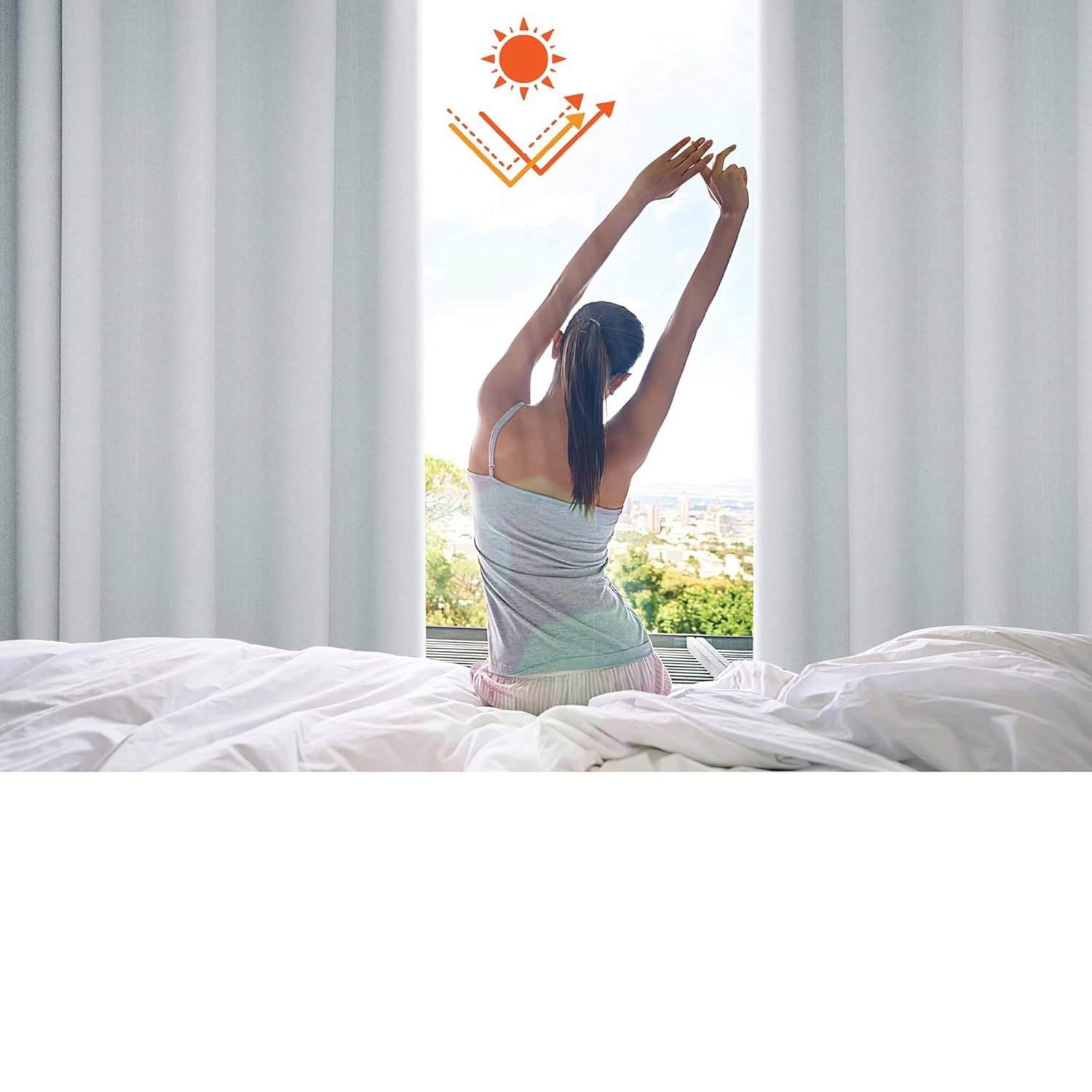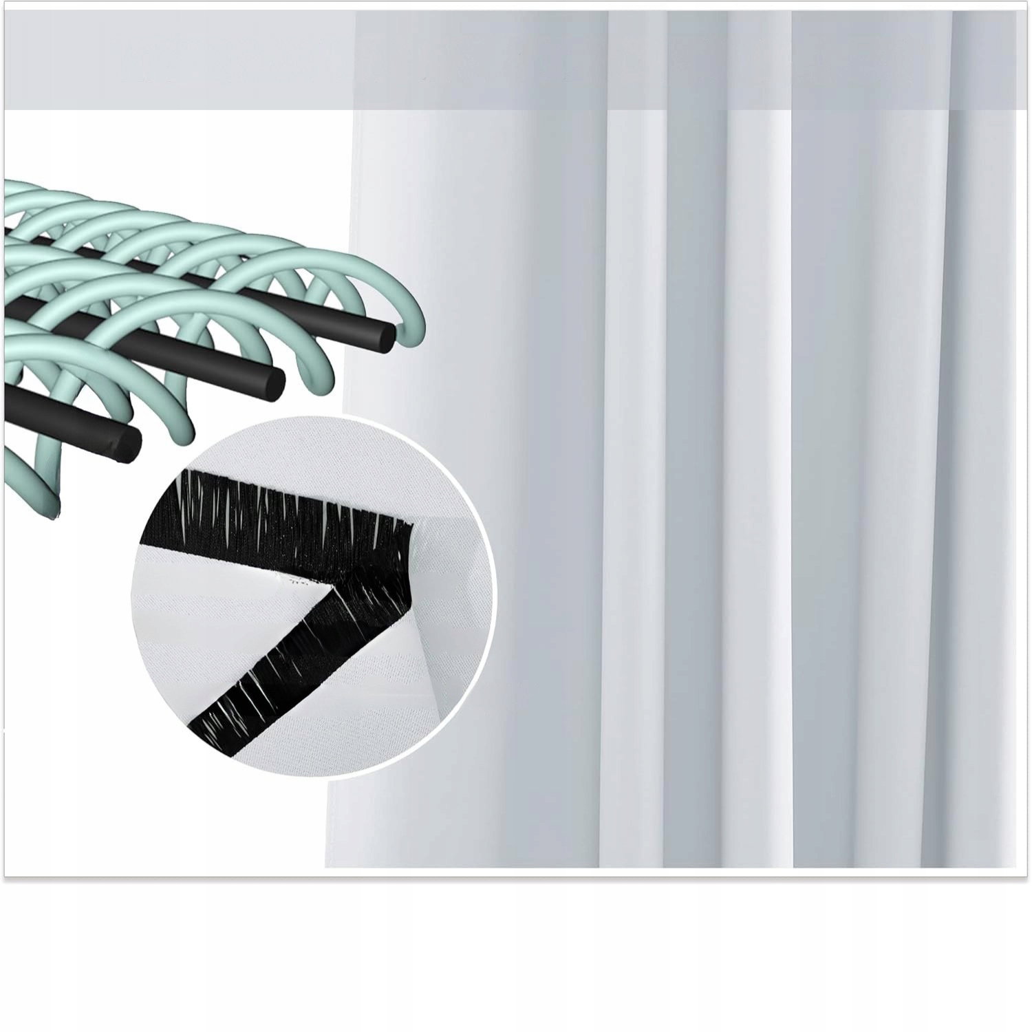 - Wydajność: zasłona zaciemnia i blokuje 60–75% światła dzięki zastosowaniu potrójnej, wytrzymałej tkaniny. Zapewnia ochronę prywatności i ogranicza niechciany hałas.