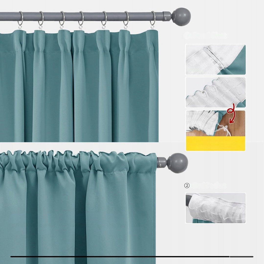 Zasłony zaciemniające Deconovo z marszczeniem 214x132cm niebieskie, 2szt