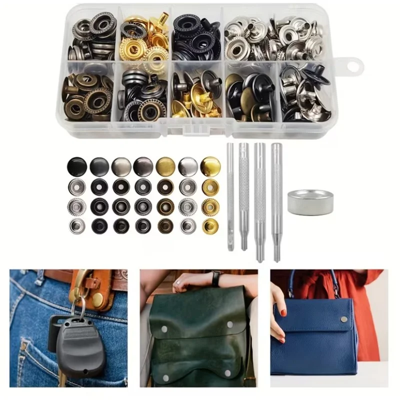 Kompleksowy zestaw montażowy przeznaczony do szybkiej naprawy i personalizacji odzieży oraz galanterii. Produkt idealny dla punktów krawieckich, sklepów z akcesoriami DIY oraz klientów indywidualnych ceniących samodzielność. Zestaw zawiera wszystkie niezbędne elementy do profesjonalnego nabijania zatrzasków bez konieczności używania specjalistycznych maszyn.