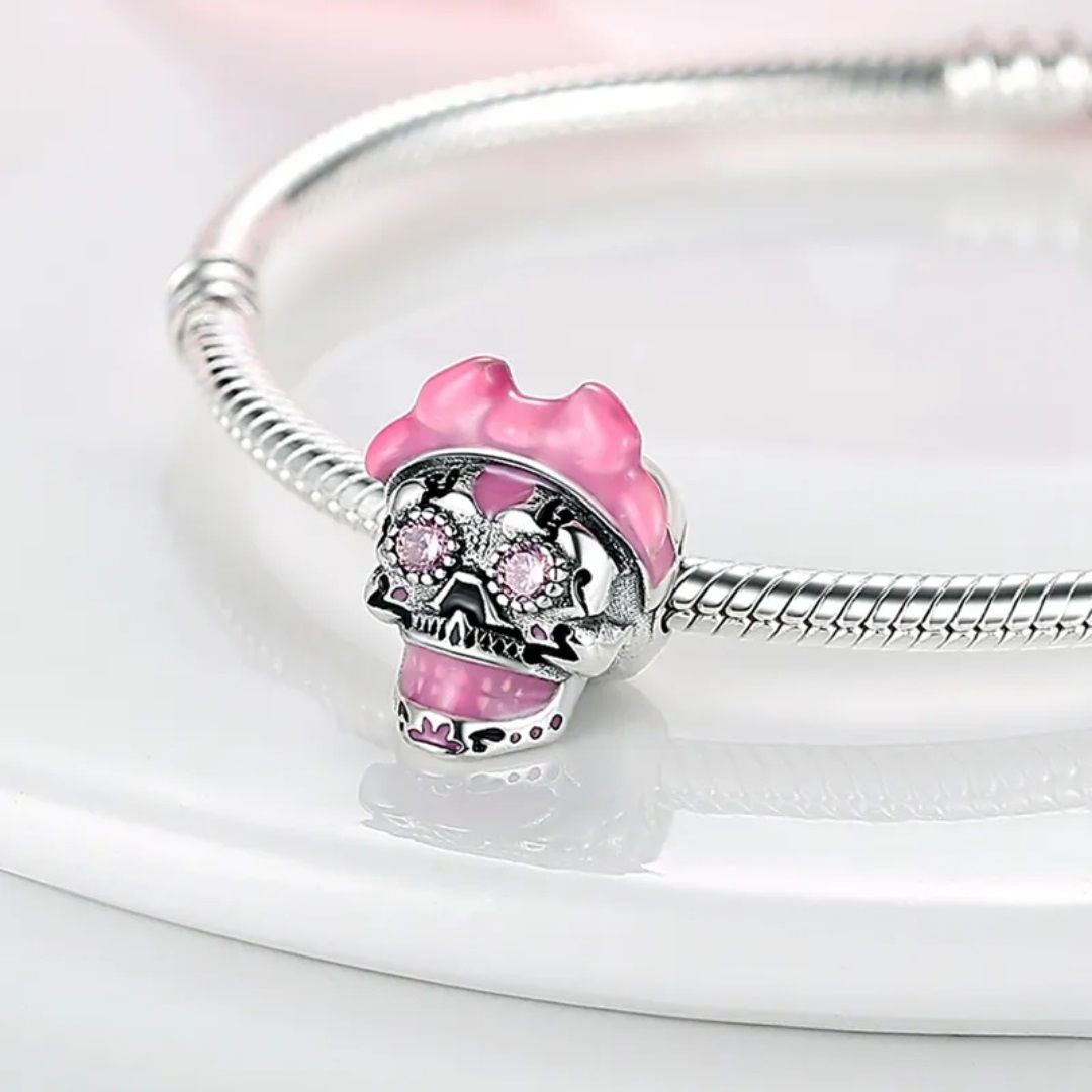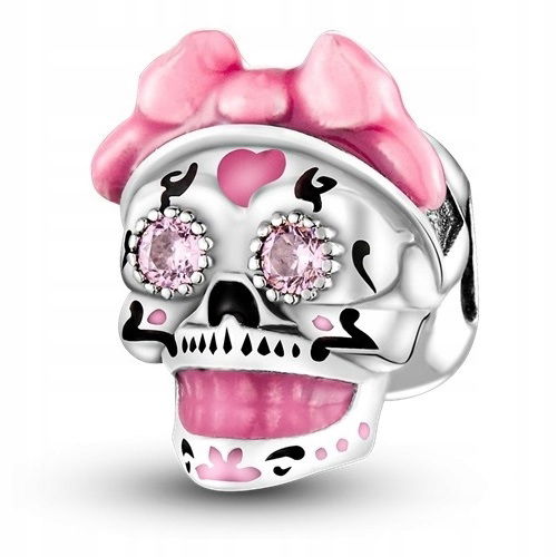 Zawieszka SREBRO 925 Charms Koralik Różowa Czaszka Dia de los Muertos