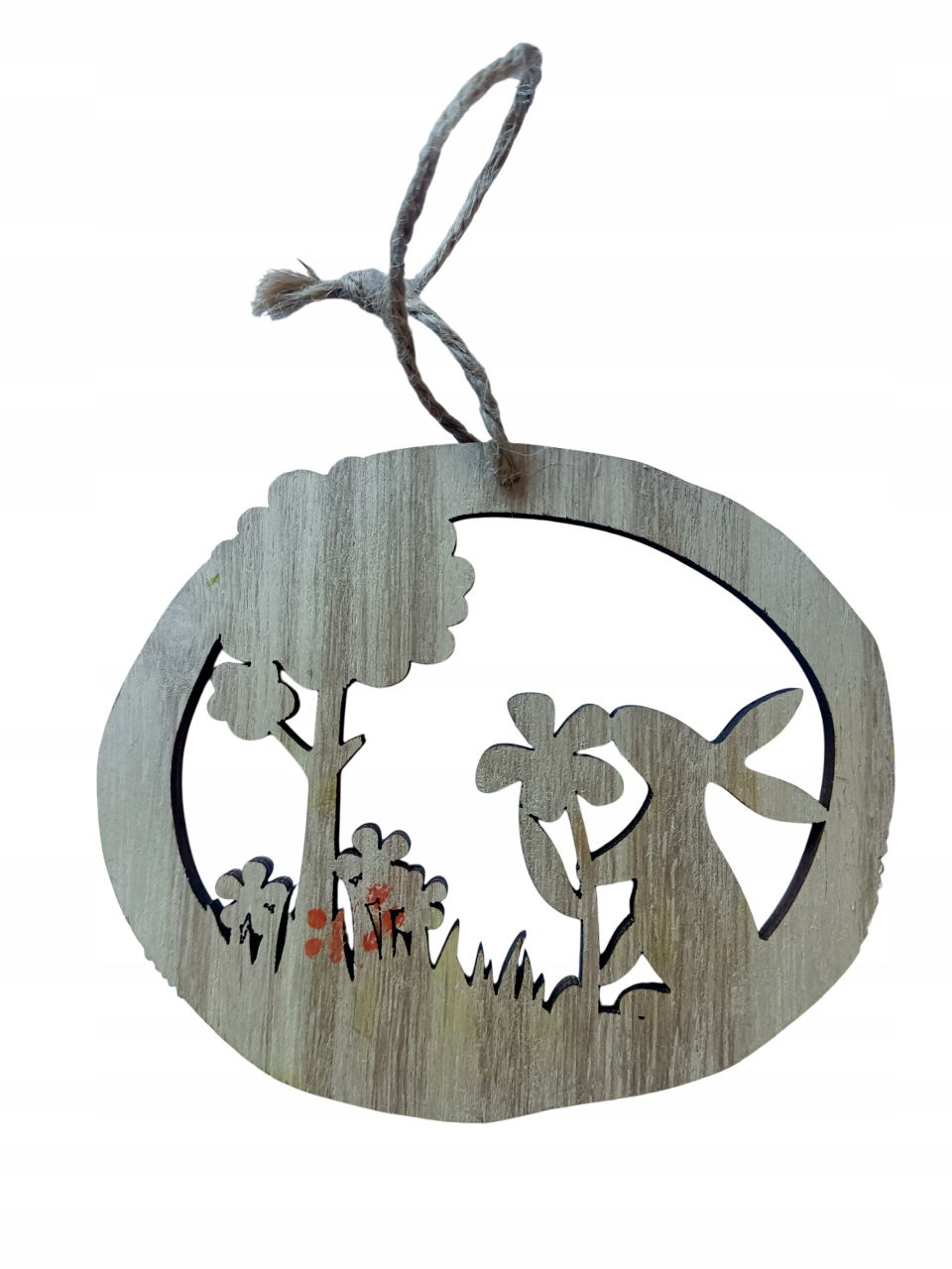 Dodaj wyjątkowego uroku swoim wnętrzom w okresie wielkanocnym dzięki tej eleganckiej, drewnianej zawieszce z motywem zająca.