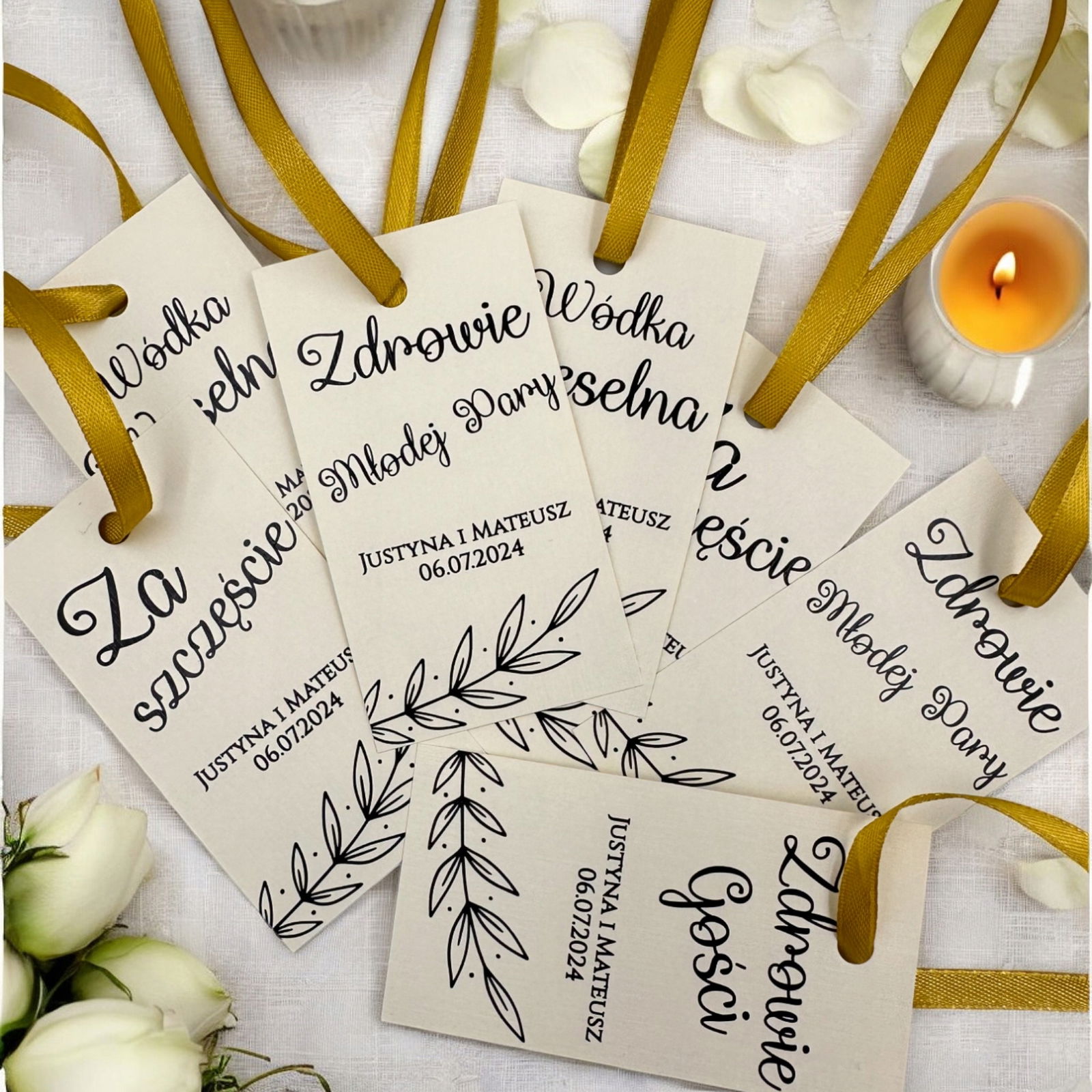W cenie otrzymają Państwo 1 komplet czyli 50 Sztuk  zawieszek spersonalizowanych na alkohol z 5 tekstami
